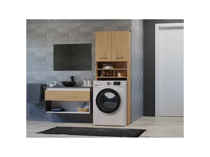 Szafka Pola DK | Dąb Artisan | 64x30x180 cm | Regał Łazienkowy nad Pralkę