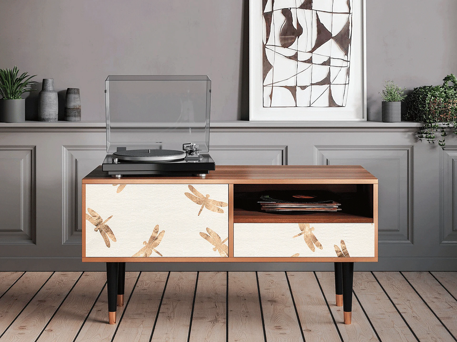 Szafka RTV - 115х59х48 cm - T3 - Nude Dragonflies, Orzech