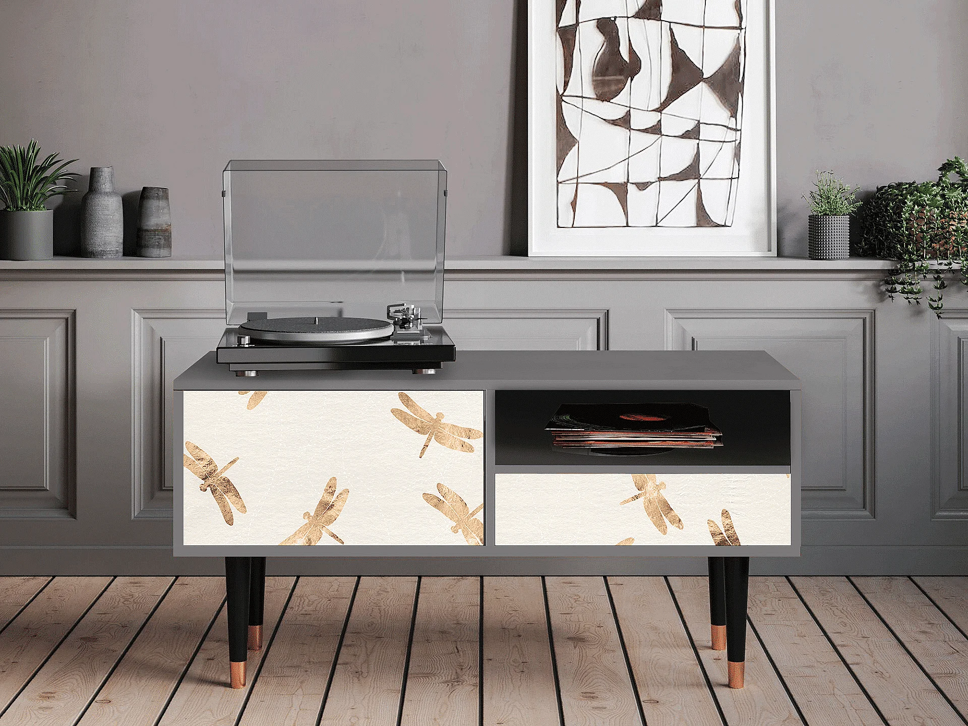 Szafka RTV - 115х59х48 cm - T3 - Nude Dragonflies, Szary