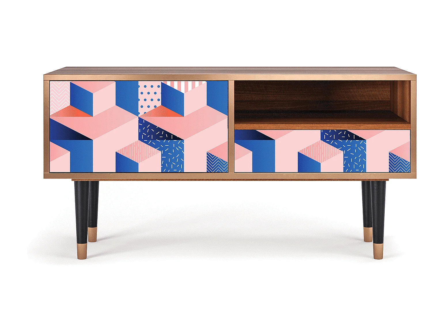 Szafka RTV - 115х59х48 cm - T3 - Pinky Squares, Orzech