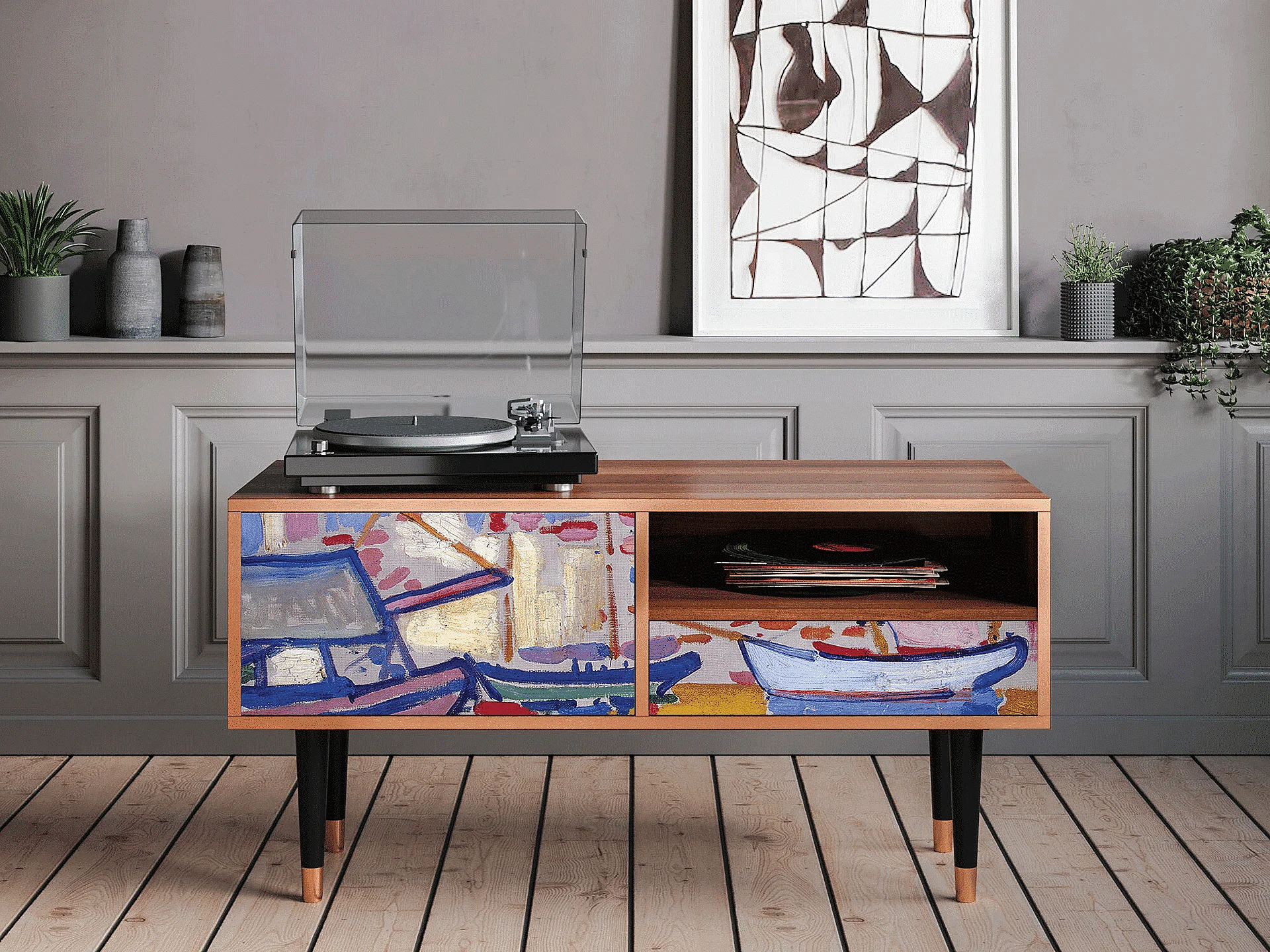 Szafka RTV - 115х59х48 cm - T3 - The Port of Collioure , Orzech