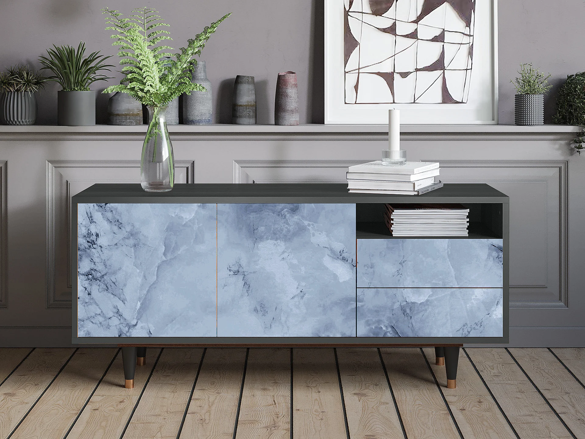 Szafka RTV - 125х56х41 cm - T7 - Piaskowyy Marble, Antracyt