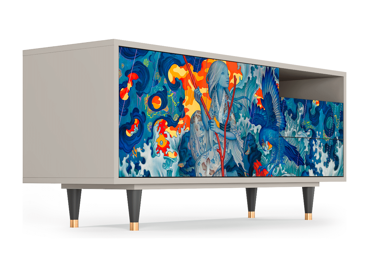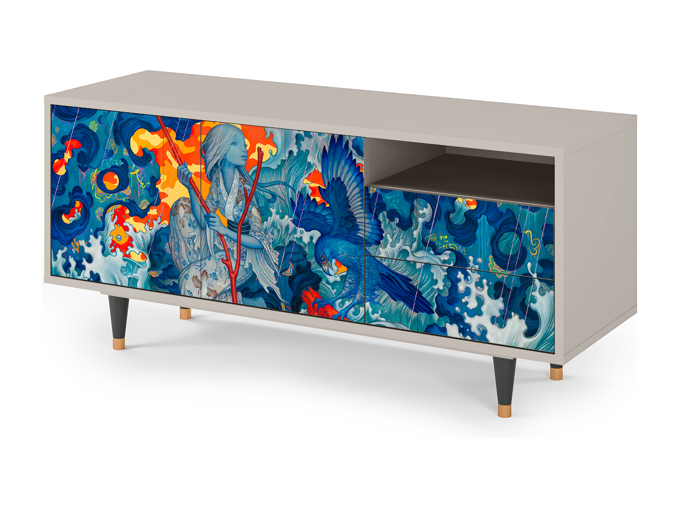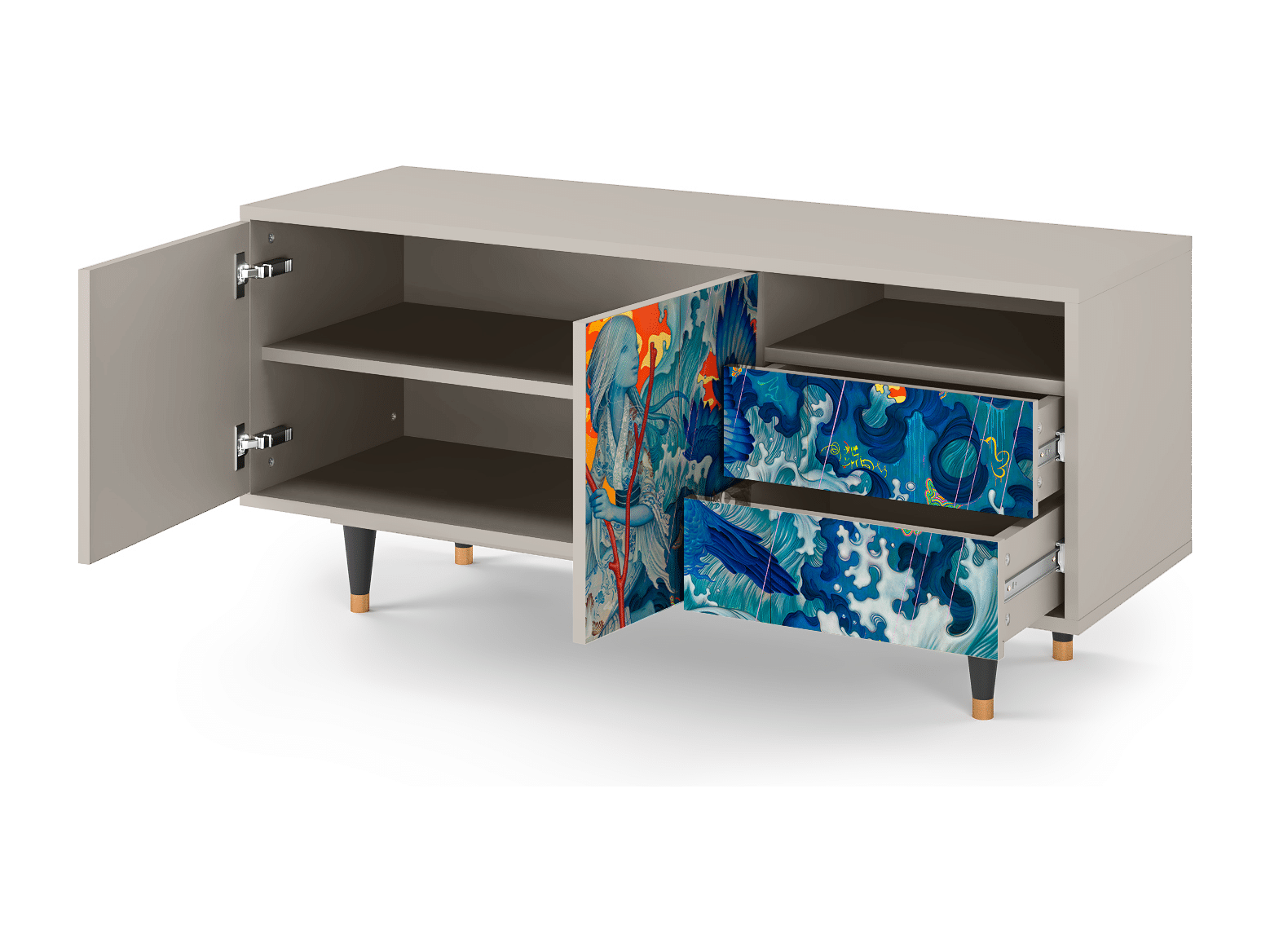 Szafka RTV - 125х56х41 cm - T7 - The Girl - James Jean, Piaskowy