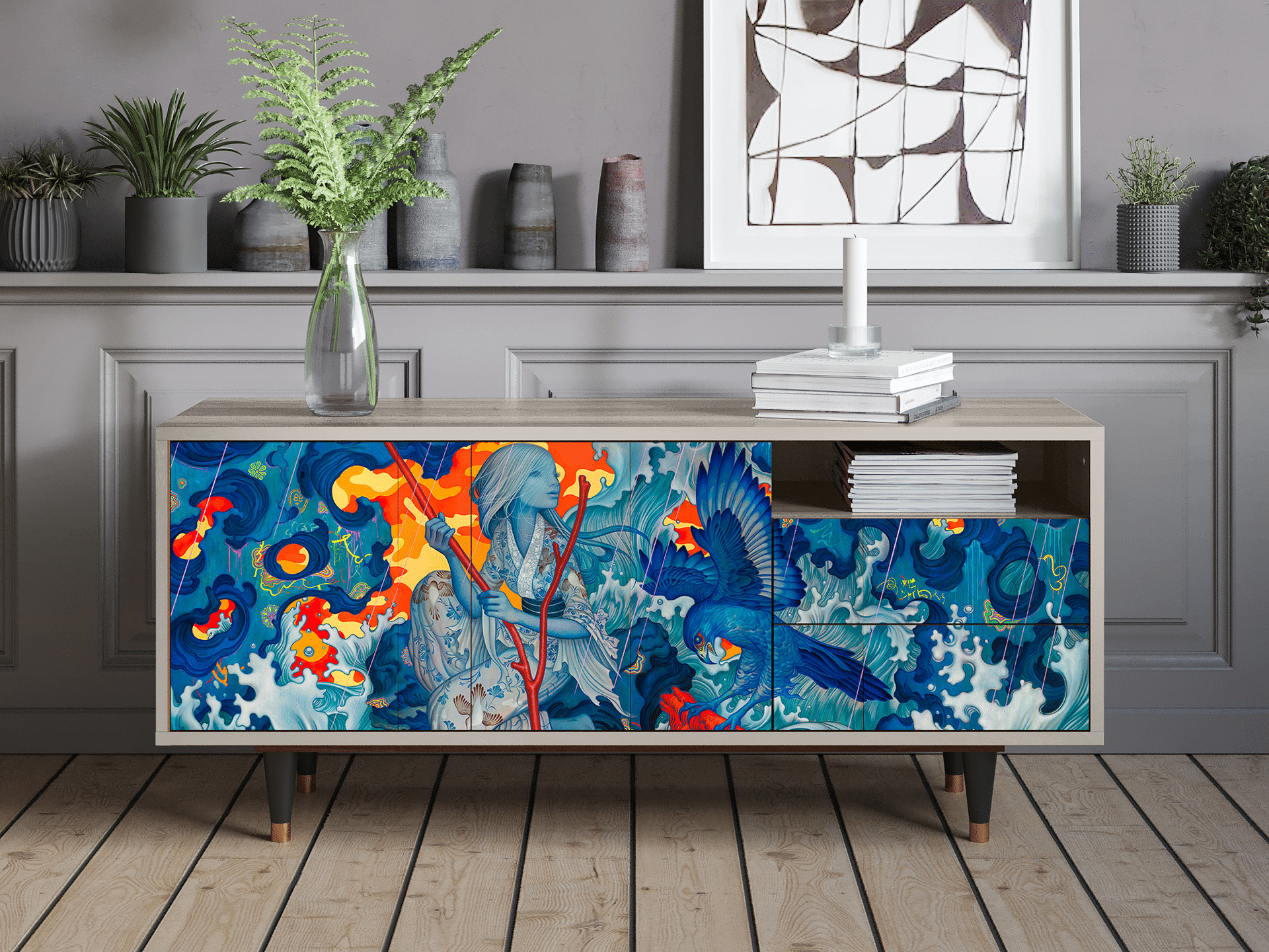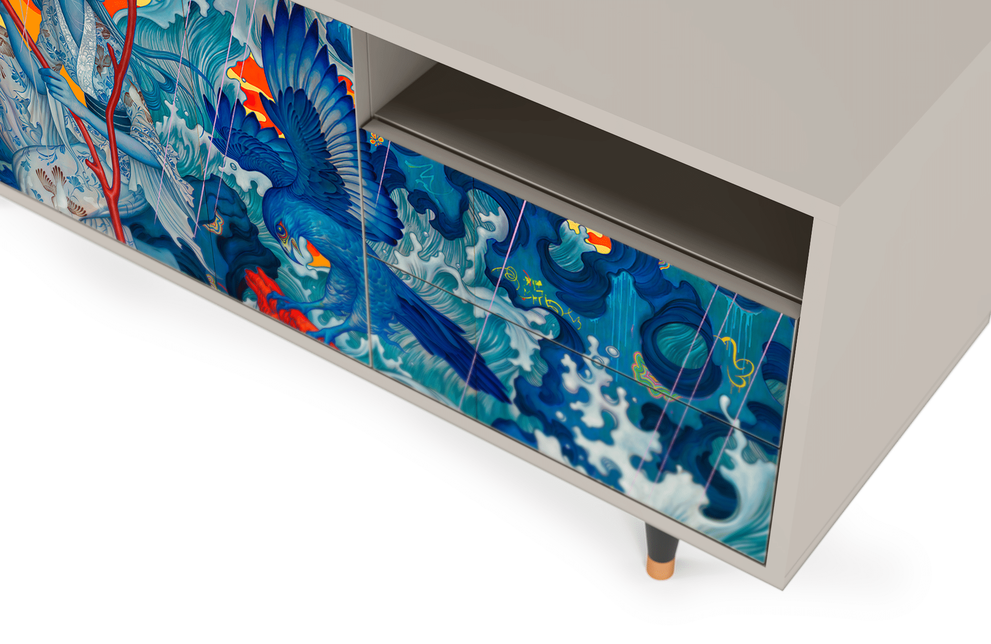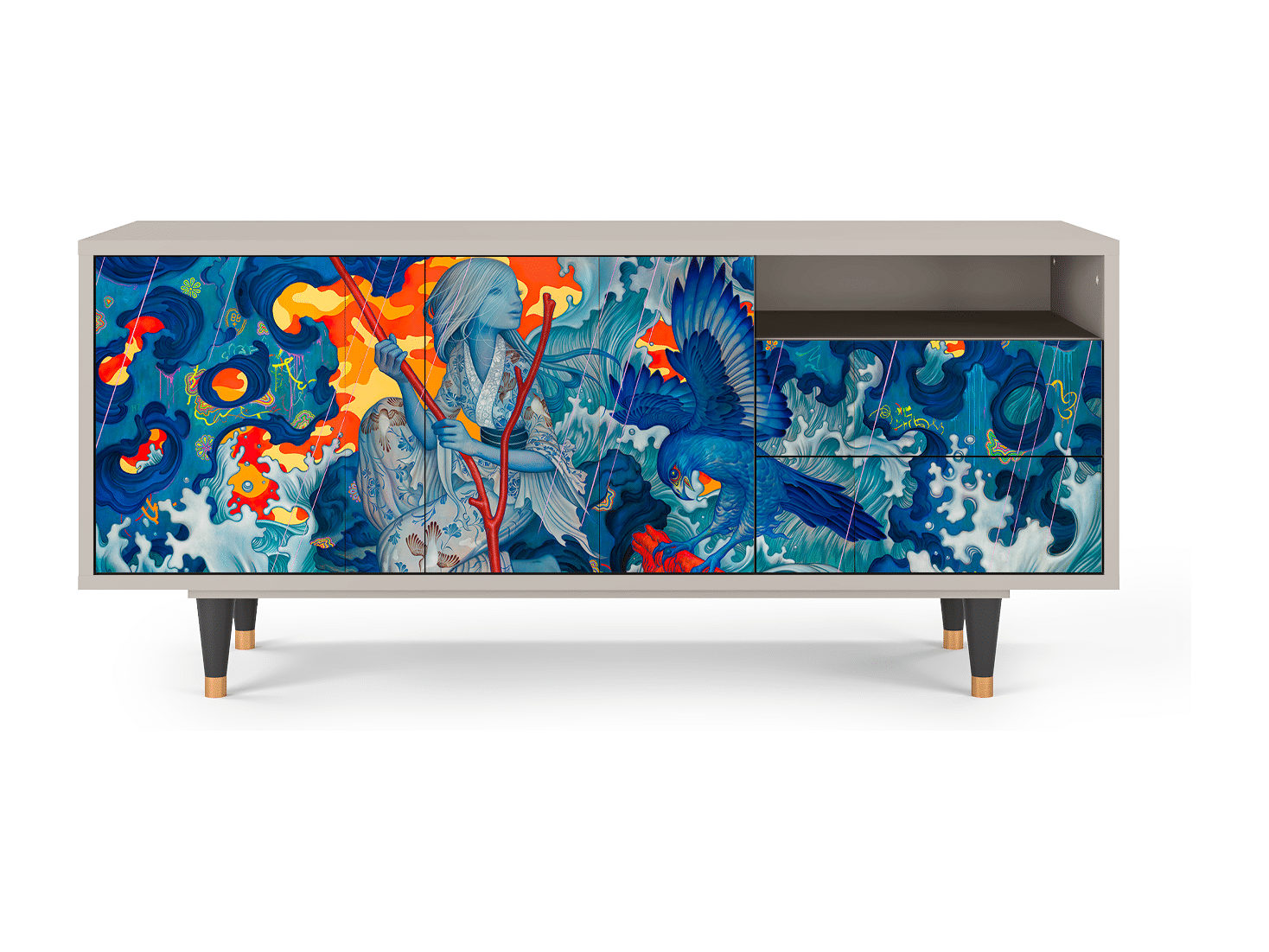 Szafka RTV - 125х56х41 cm - T7 - The Girl - James Jean, Piaskowy