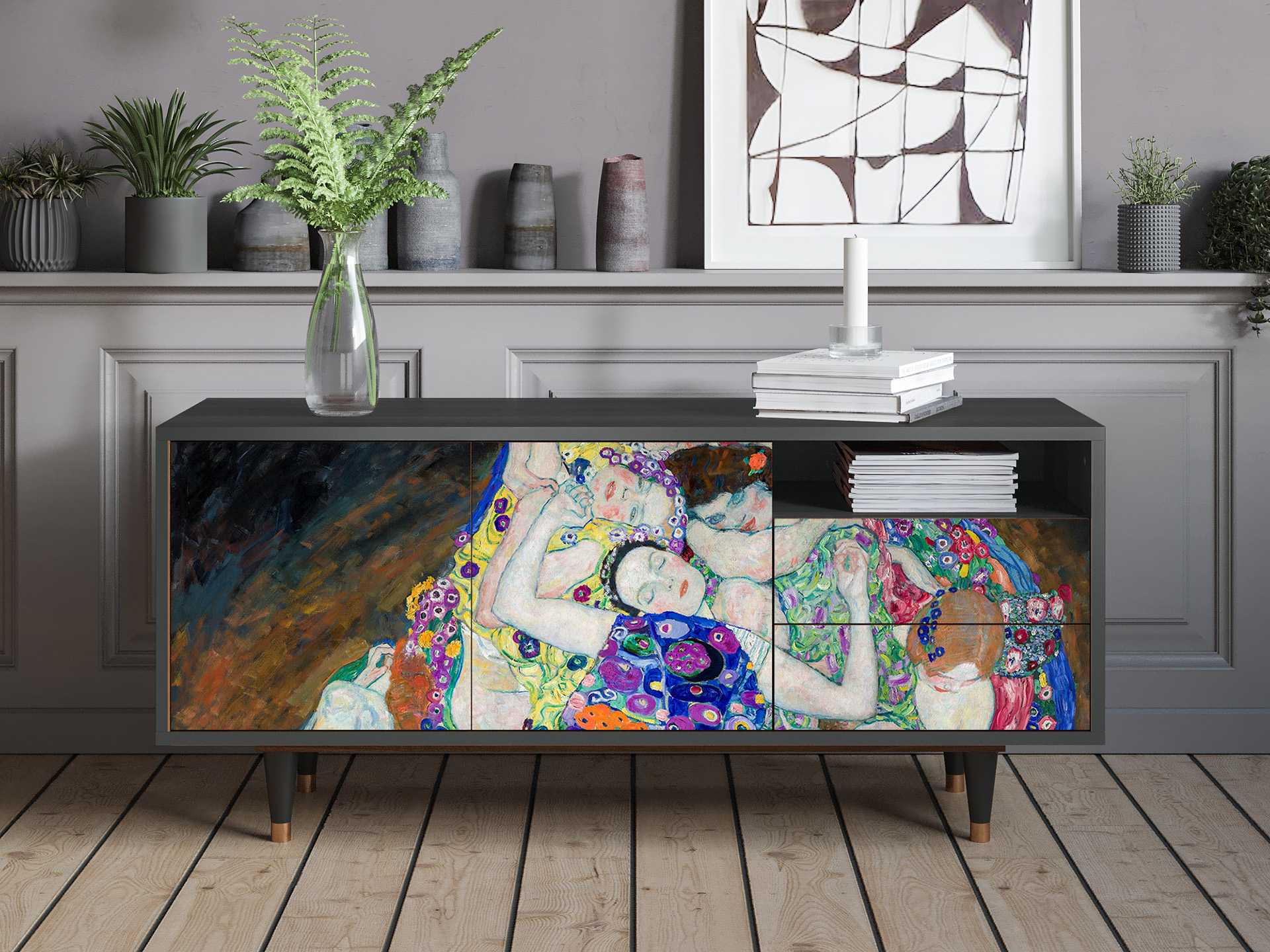 Szafka RTV - 125х56х41 cm - T7 - The Maiden by Klimt, Antracyt