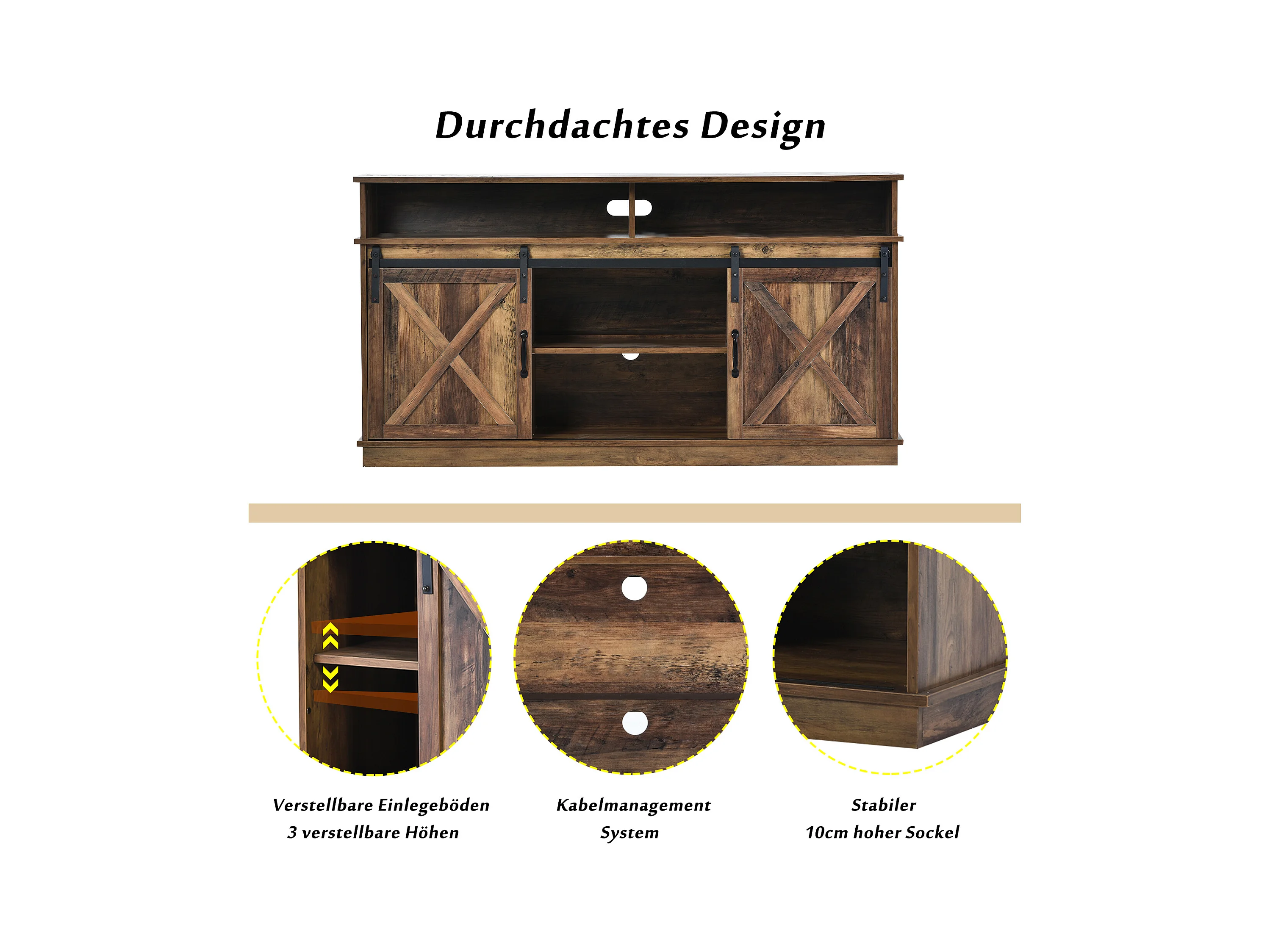 Szafka RTV - 148 x 40 x 78 cm - z 2 drzwiami przesuwnymi - regulowane półki - płyta wiórowa - brązowa
