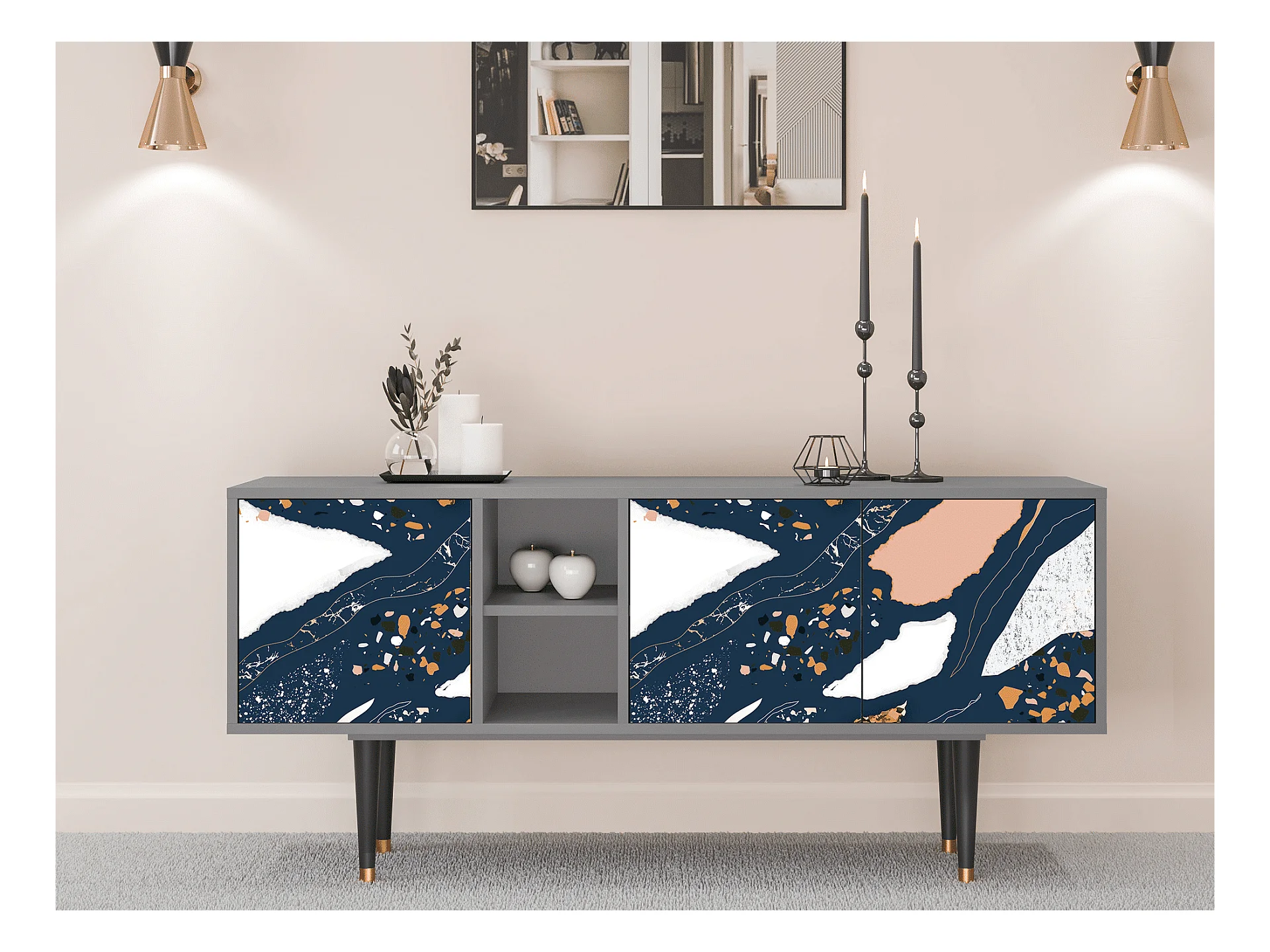Szafka RTV - 150х69х41 cm - T5 - Portugese tiles, Szary