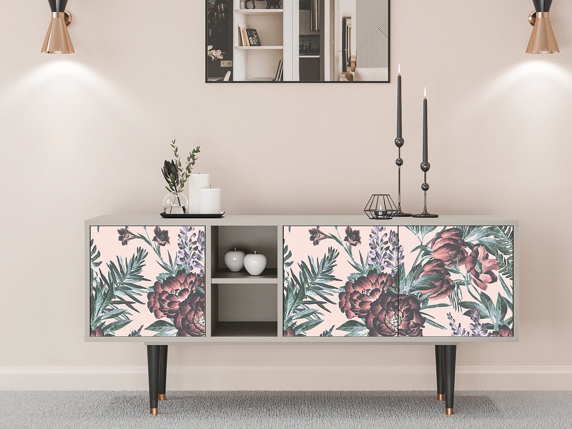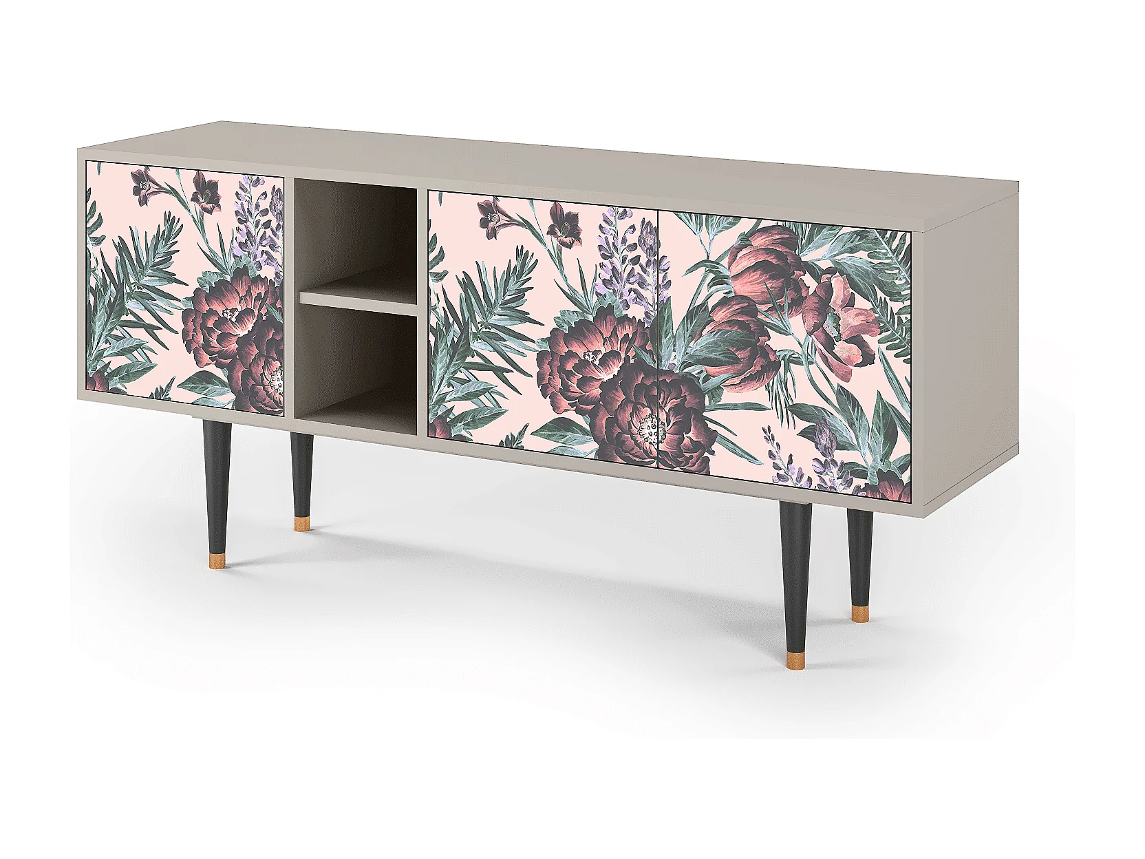 Szafka RTV - 150х69х41 cm - T5 - Peach Peonies, Piaskowy