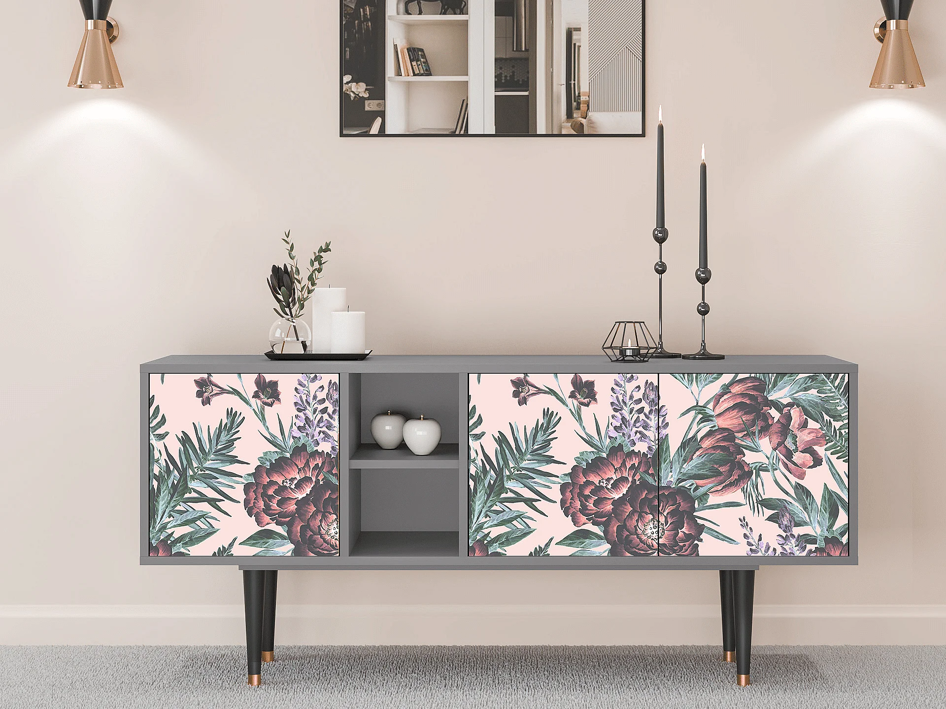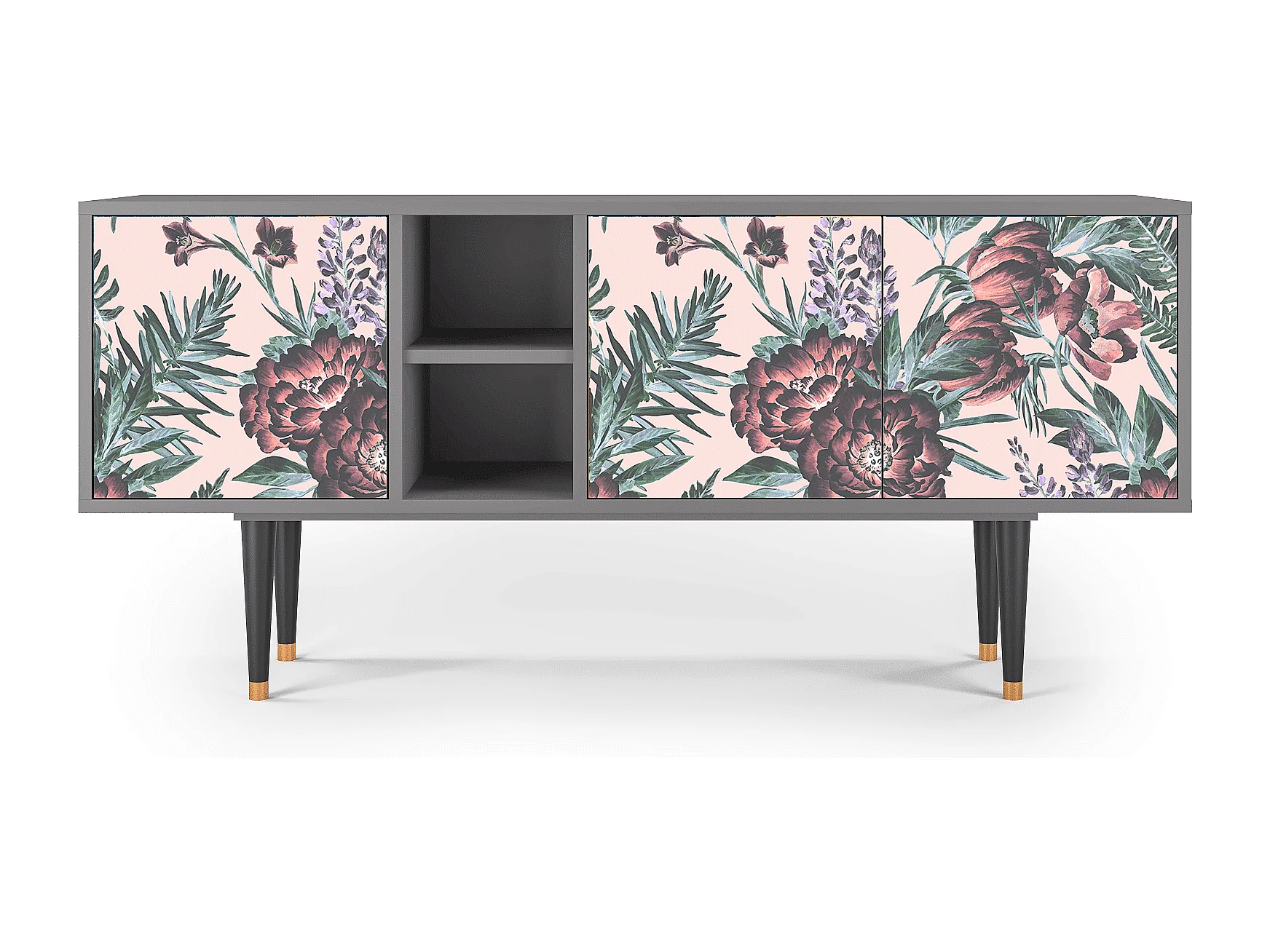 Szafka RTV - 150х69х41 cm - T5 - Peach Peonies, Szary