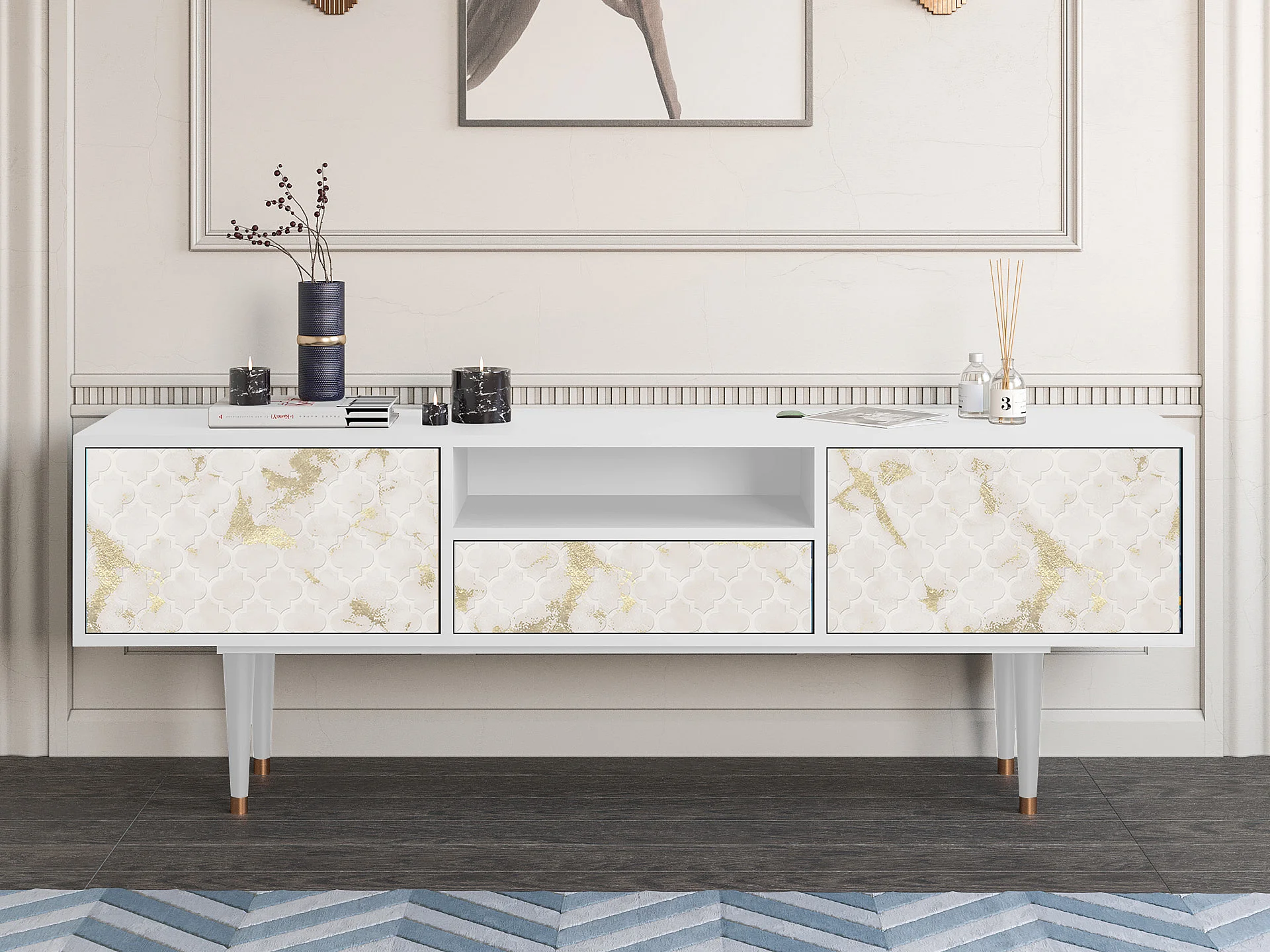 Szafka RTV - 170х59х41 cm - T6 - Sunshiny Tile, Biały