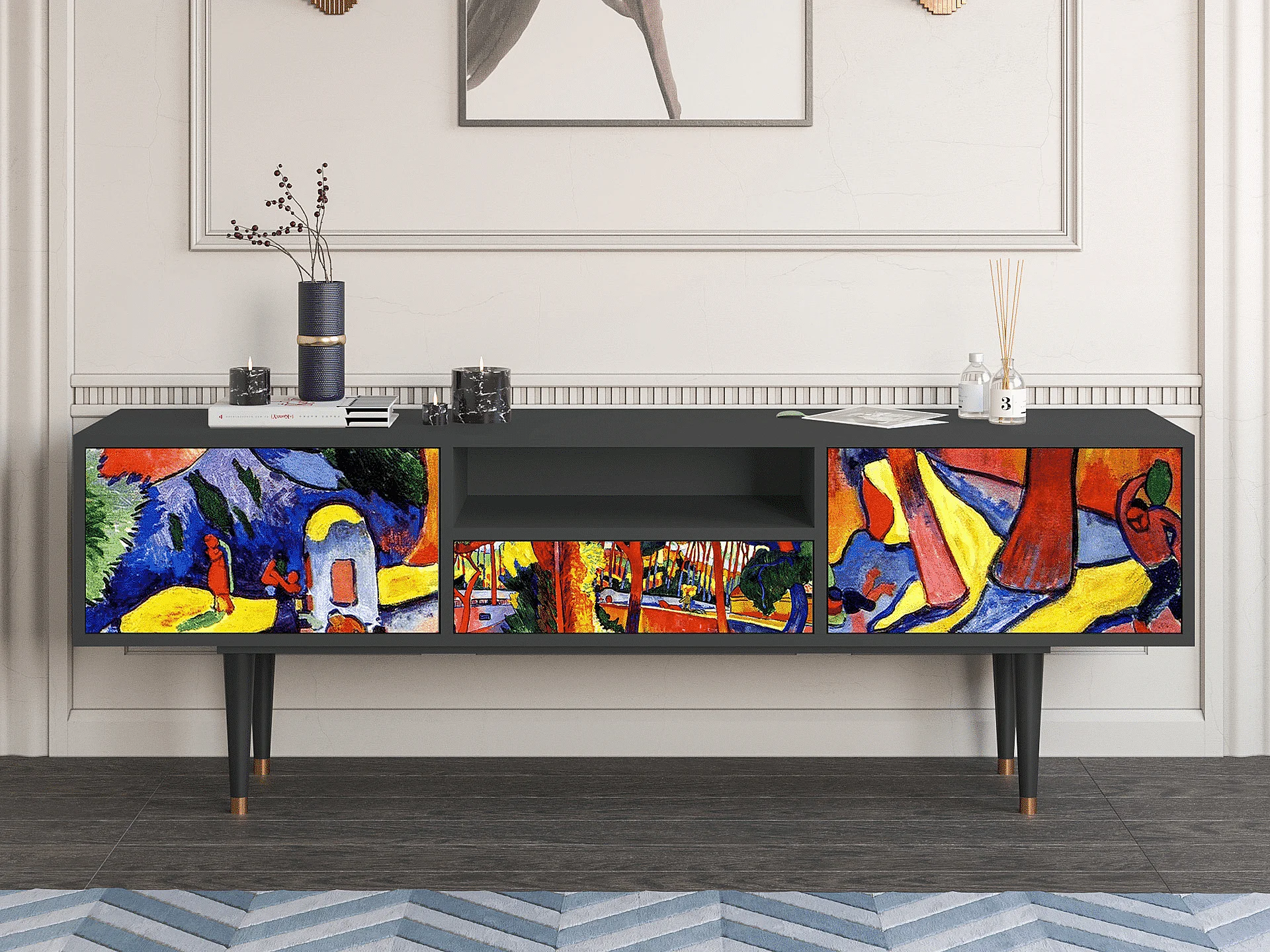 Szafka RTV - 170х59х41 cm - T6 - The Turning Road, Antracyt