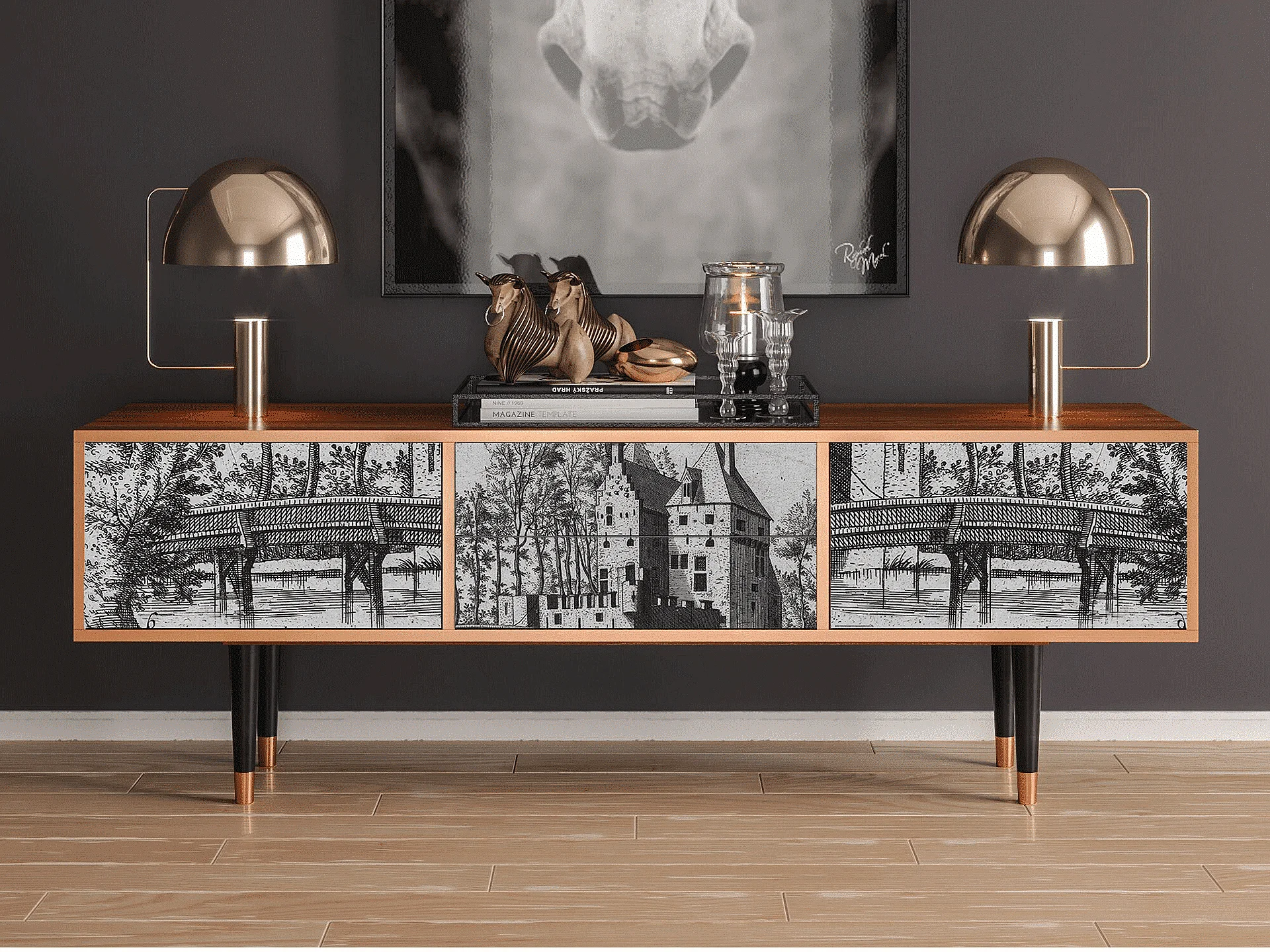 Szafka RTV - 170х59х48 cm - T4 - Castle with Bridge, Orzech