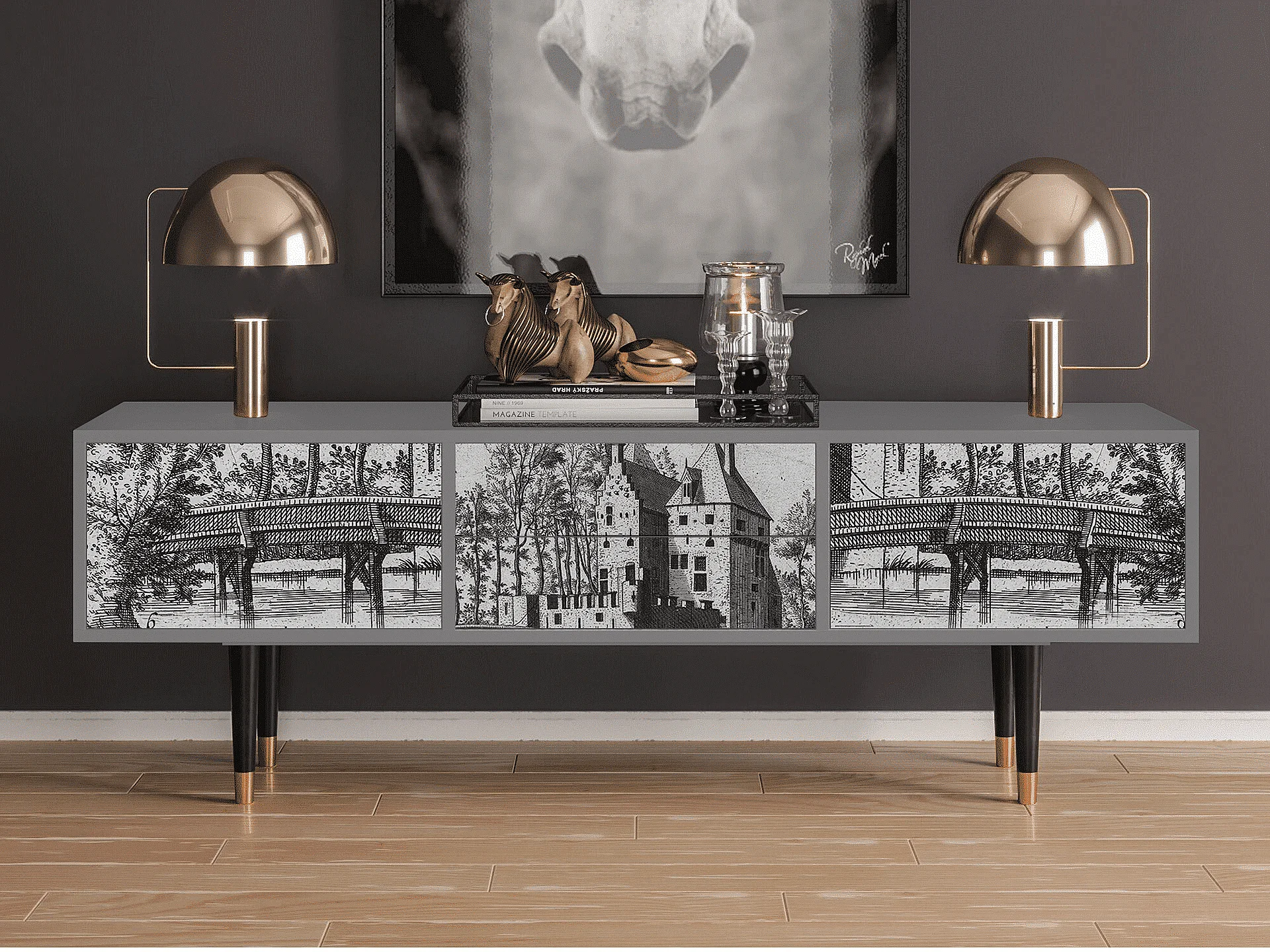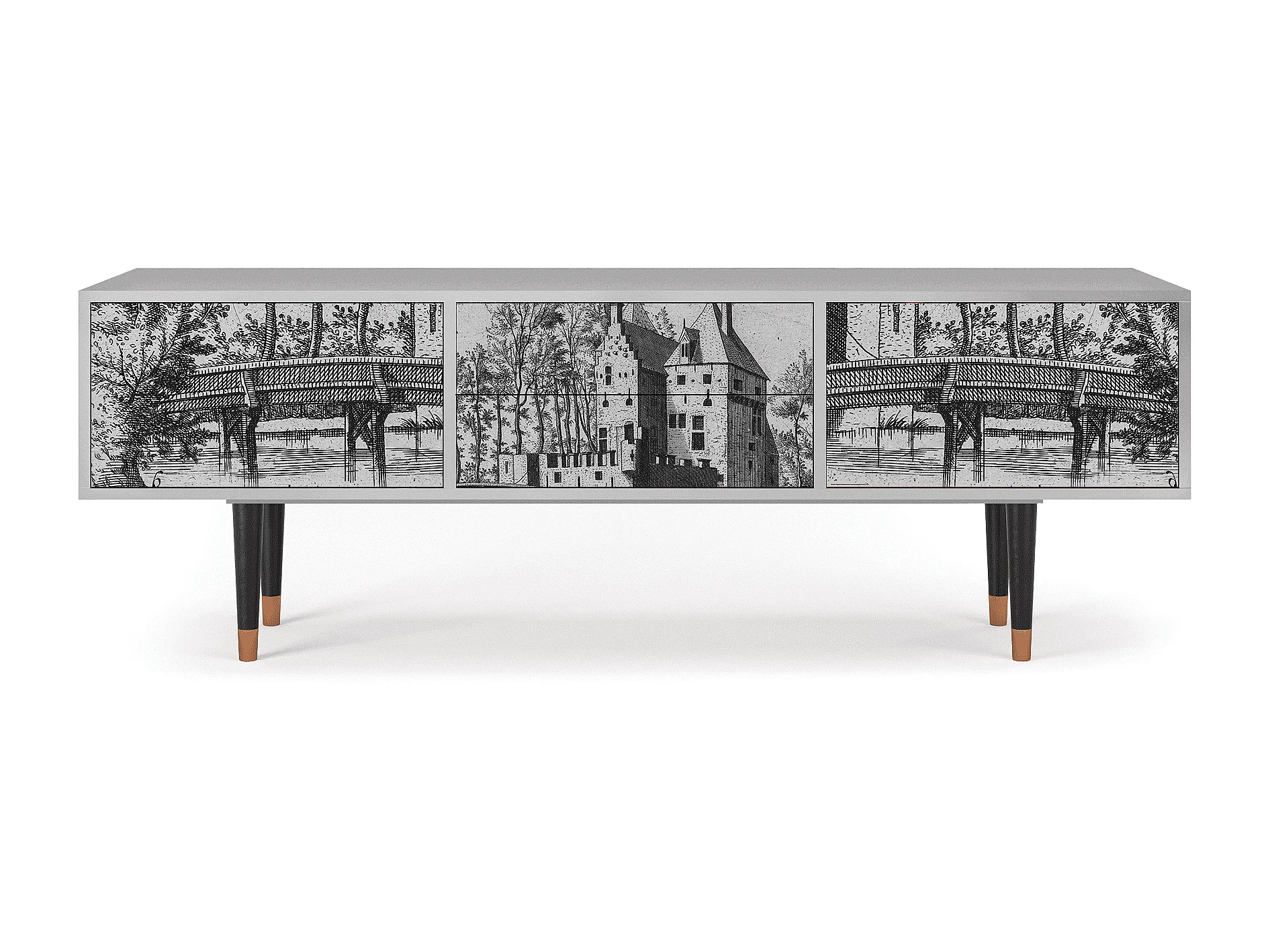 Szafka RTV - 170х59х48 cm - T4 - Castle with Bridge, Szary
