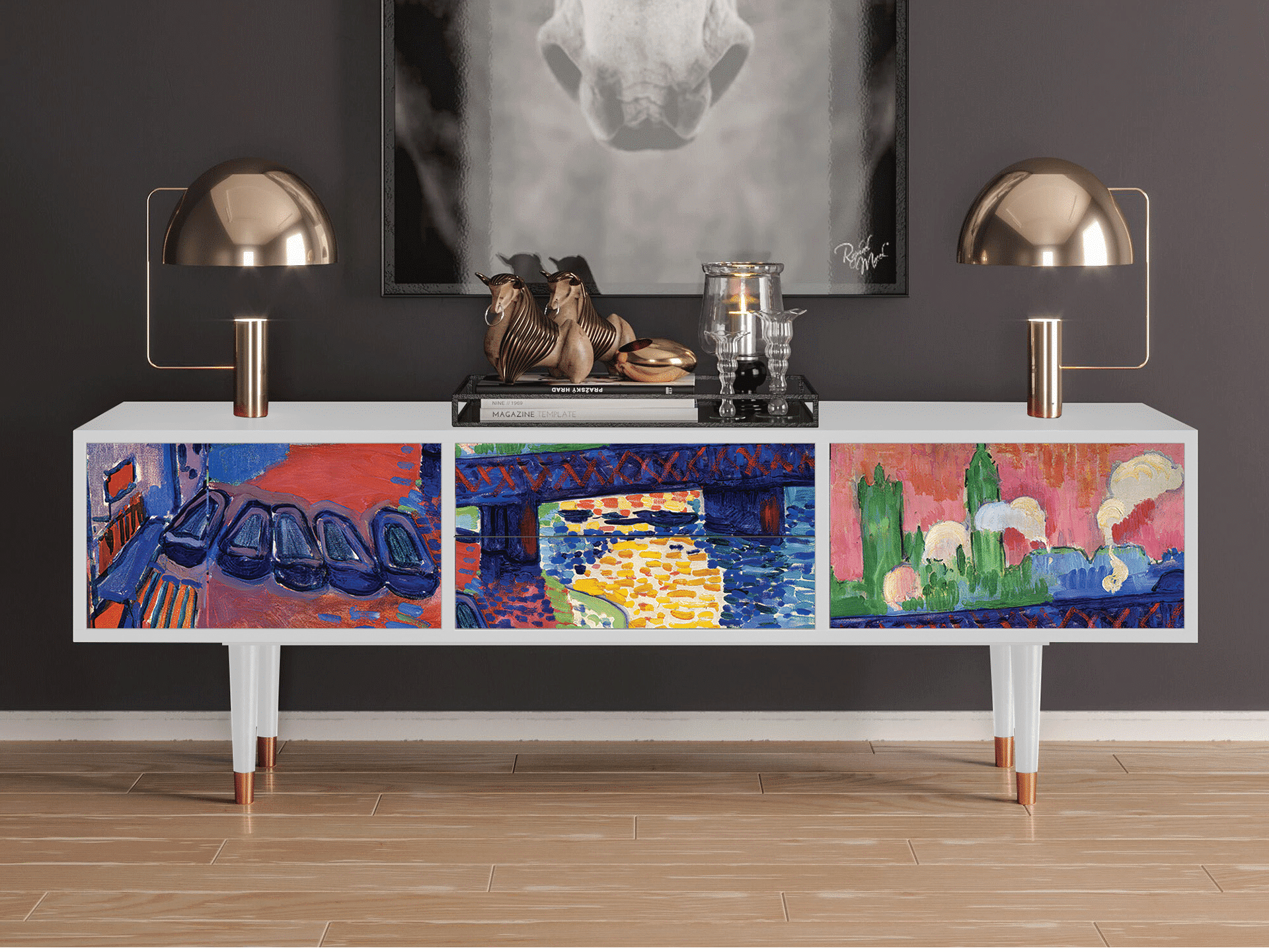 Szafka RTV - 170х59х48 cm - T4 - Charing Cross Bridge, Biały