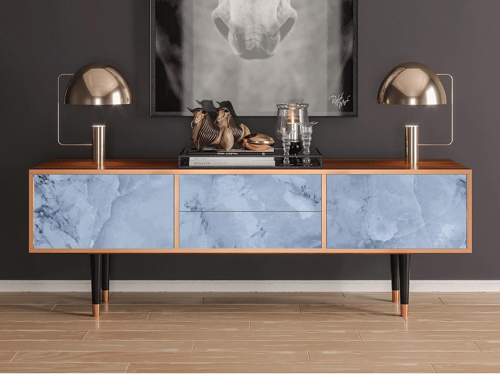 Szafka RTV - 170х59х48 cm - T4 - Feather Ice, Orzech
