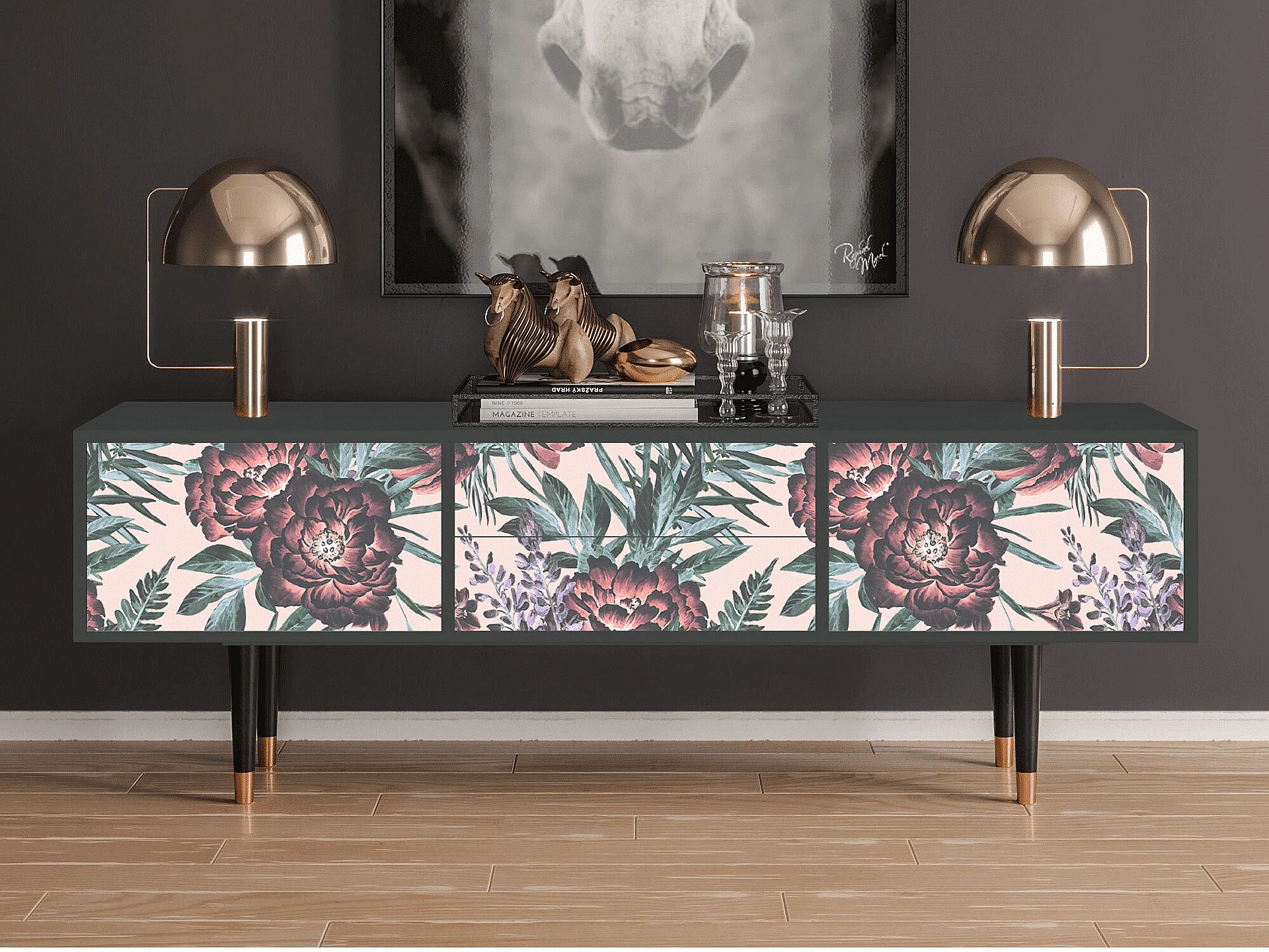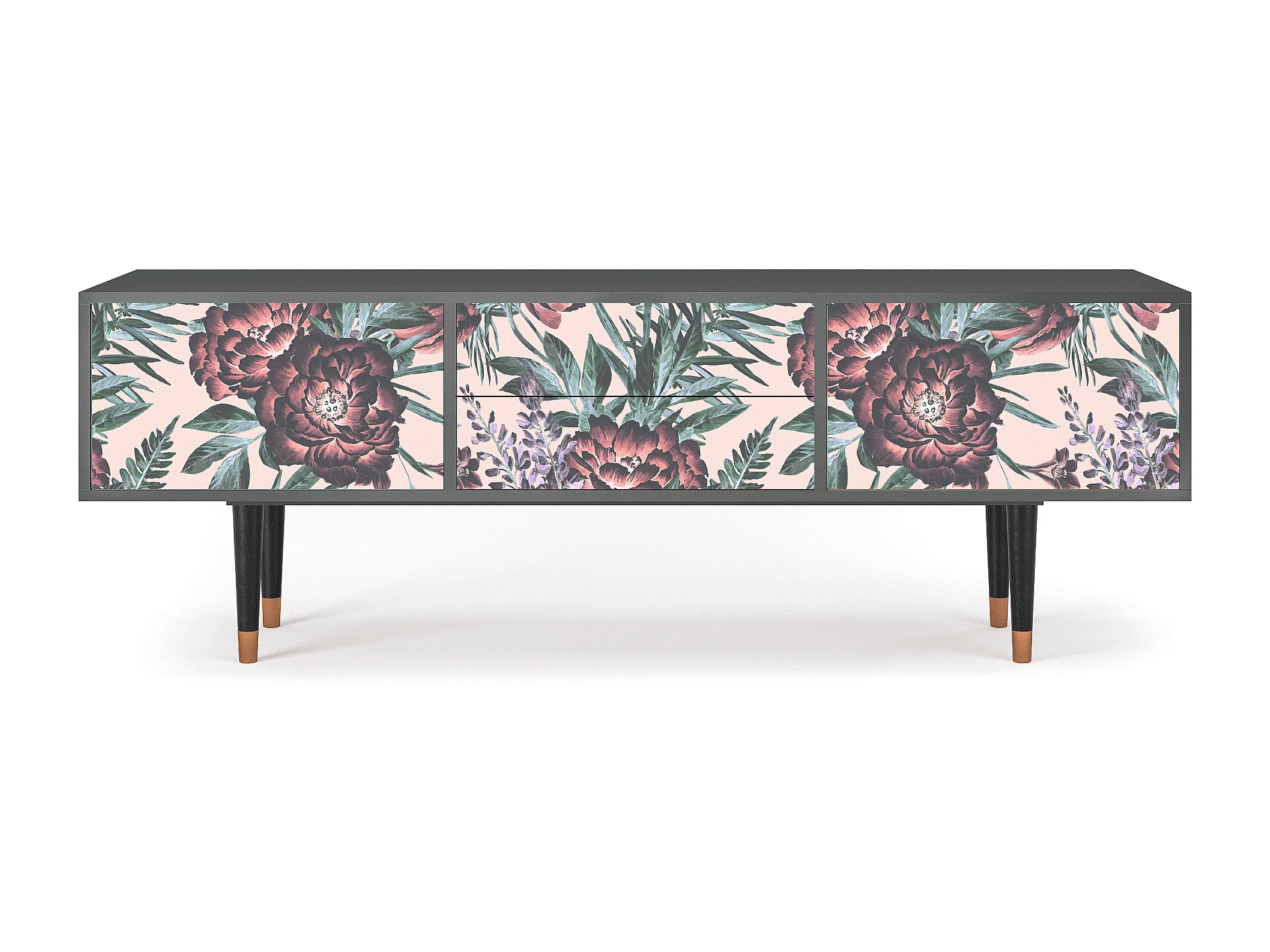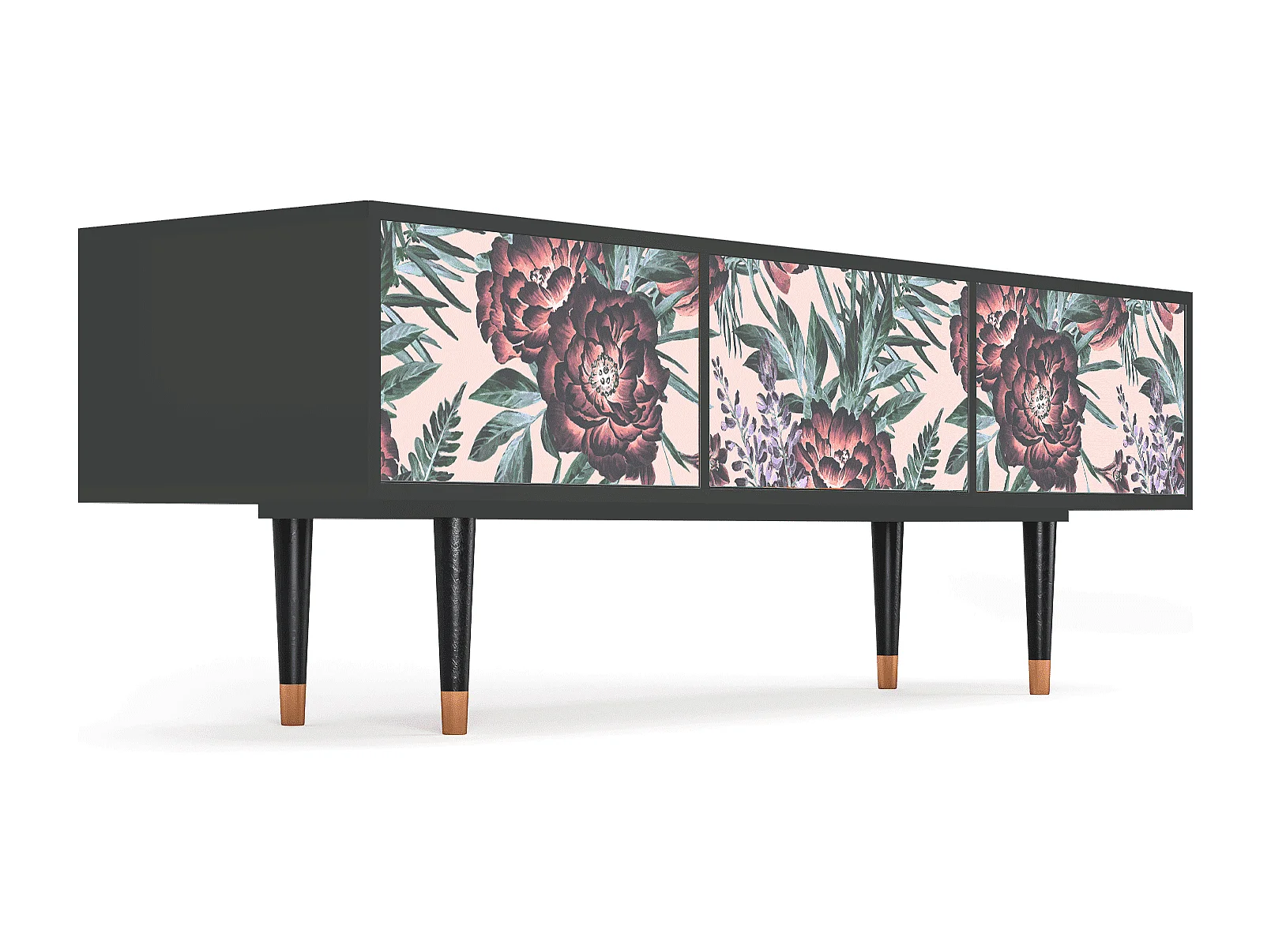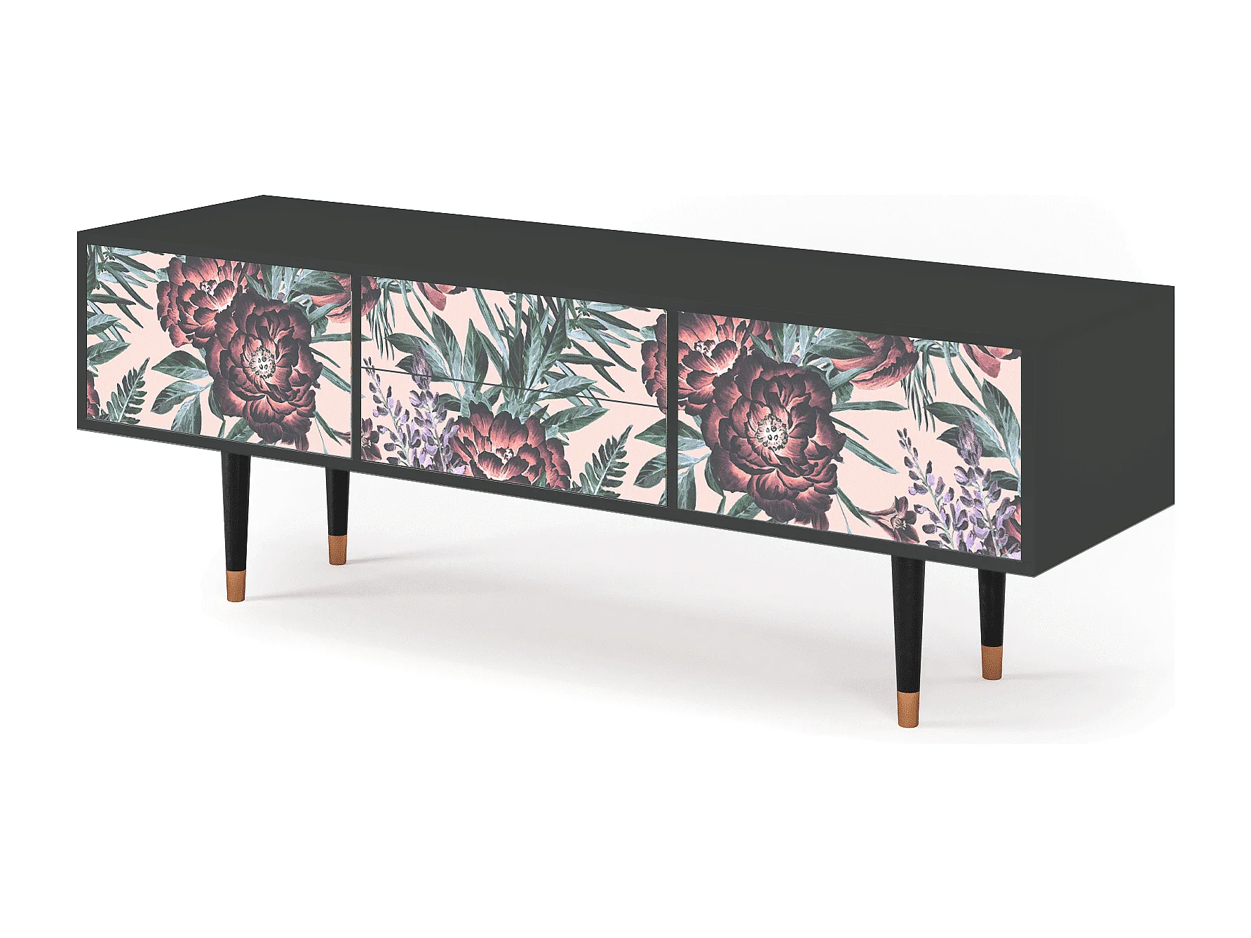 Szafka RTV - 170х59х48 cm - T4 - Peach Peonies, Antracyt