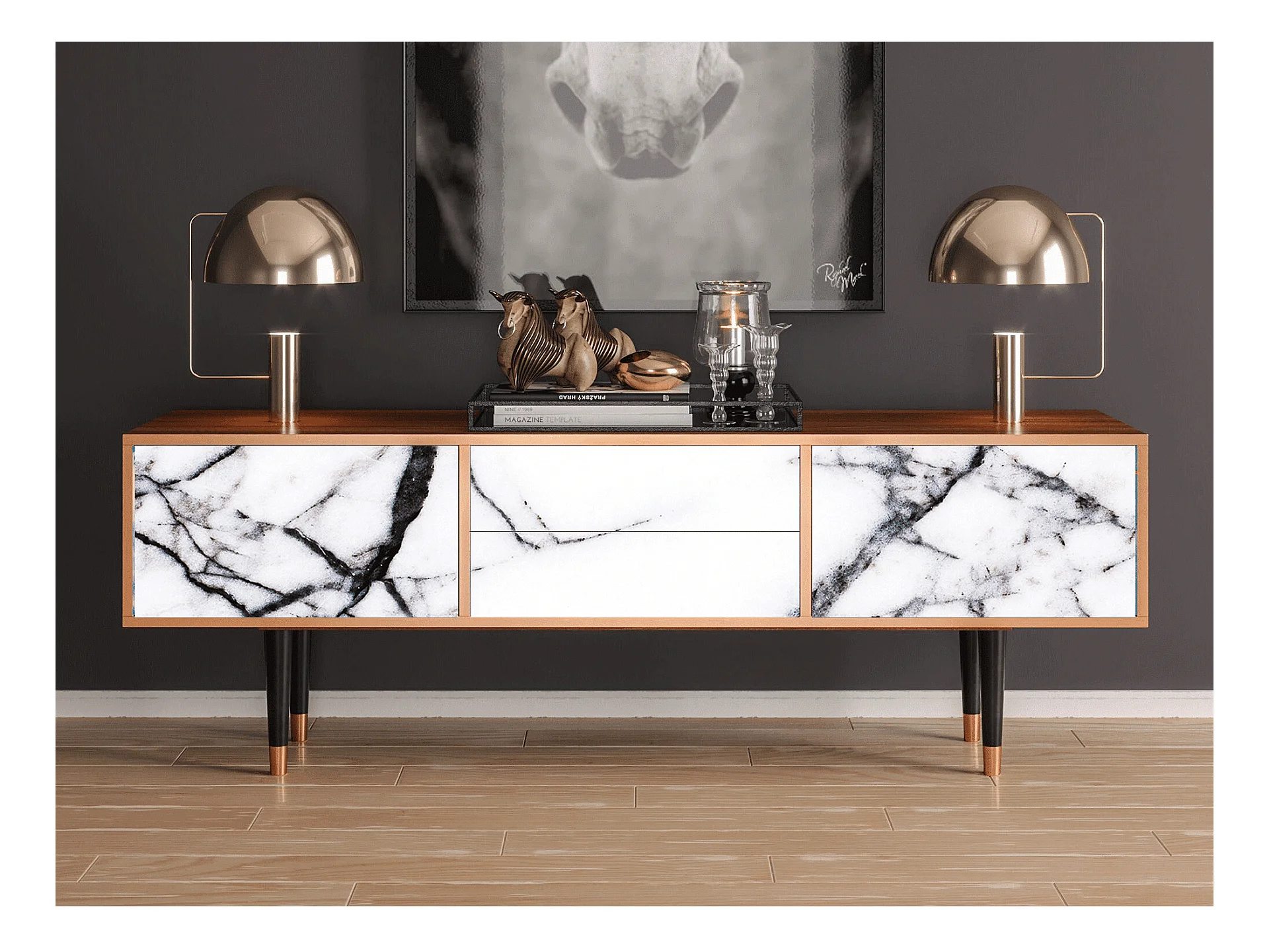 Szafka RTV - 170х59х48 cm - T4 - Raven Marble, Orzech
