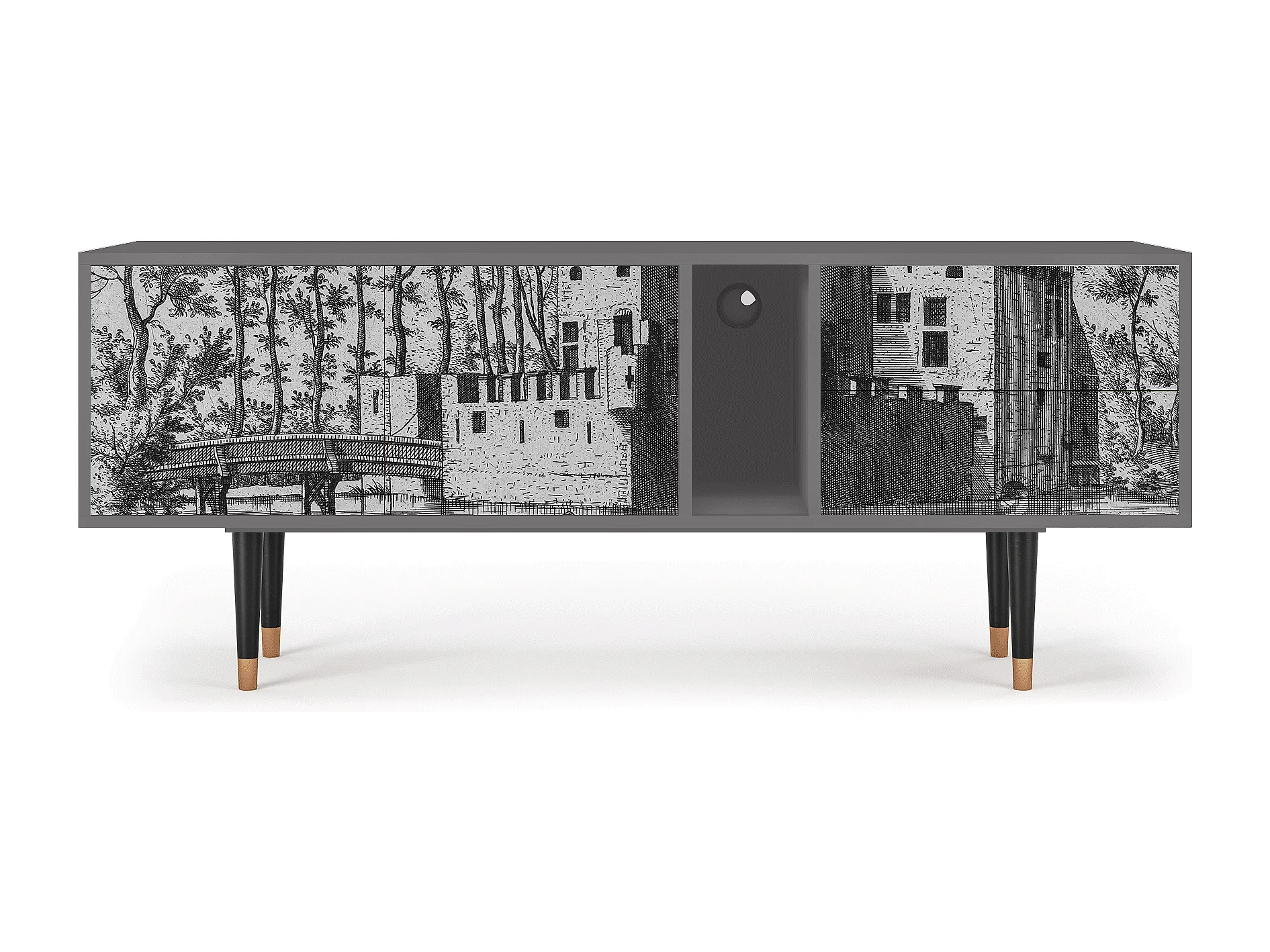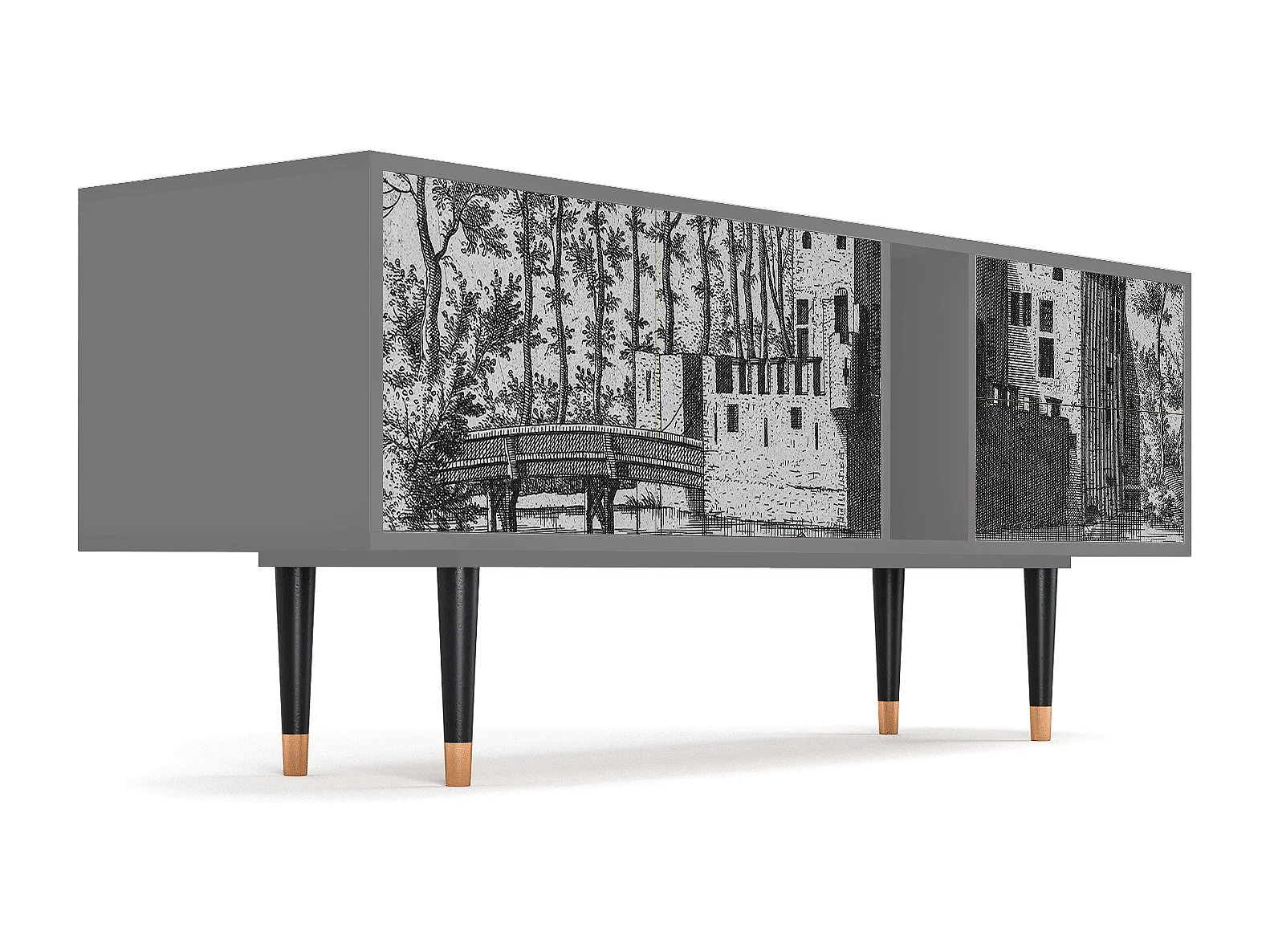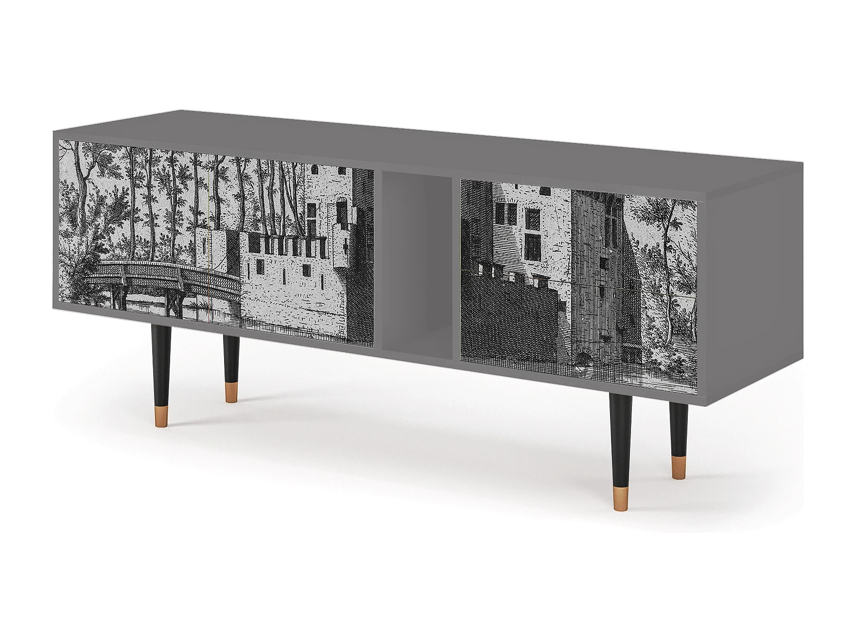 Szafka RTV - 170х69х48 cm - T1 - Castle with Bridge, Szary