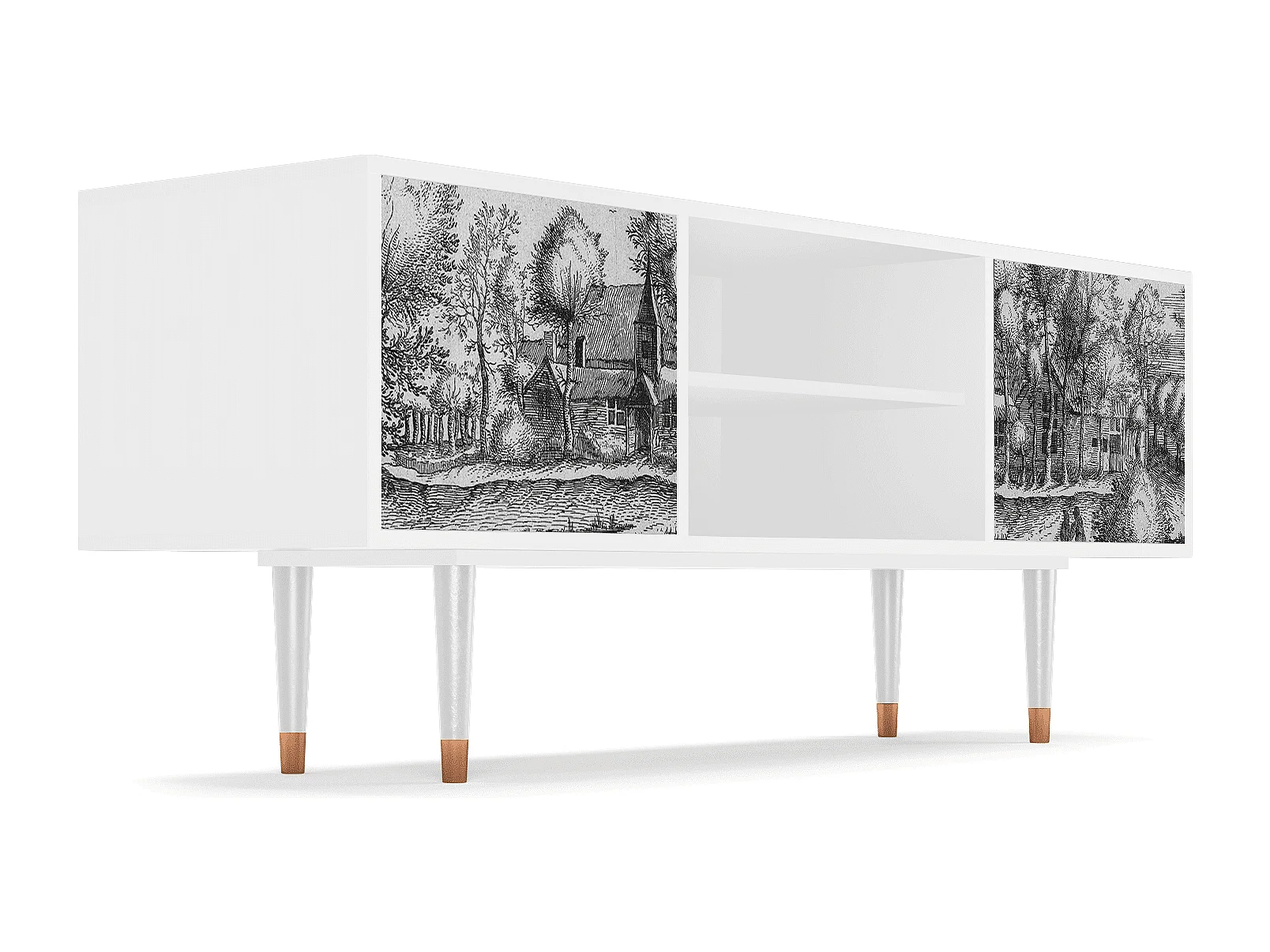 Szafka RTV - 170х69х48 cm - T1 - Mill along a River, Biały