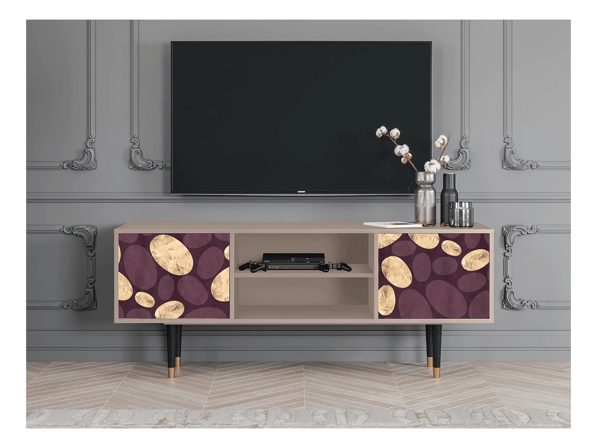 Szafka RTV - 170х69х48 cm - T2 - Abstract Expressionism, Piaskowy