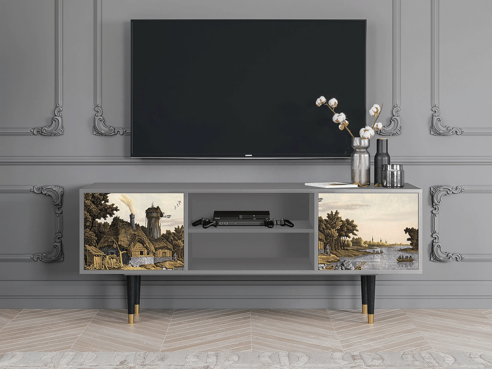 Szafka RTV - 170х69х48 cm - T2 - Mill along a River, Szary