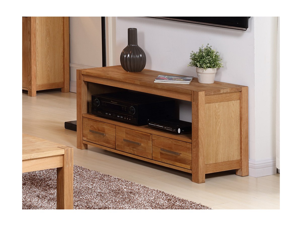 Szafka RTV BROCELIANDE II - 1 wnęka, 3 szuflady - dąb olejowany