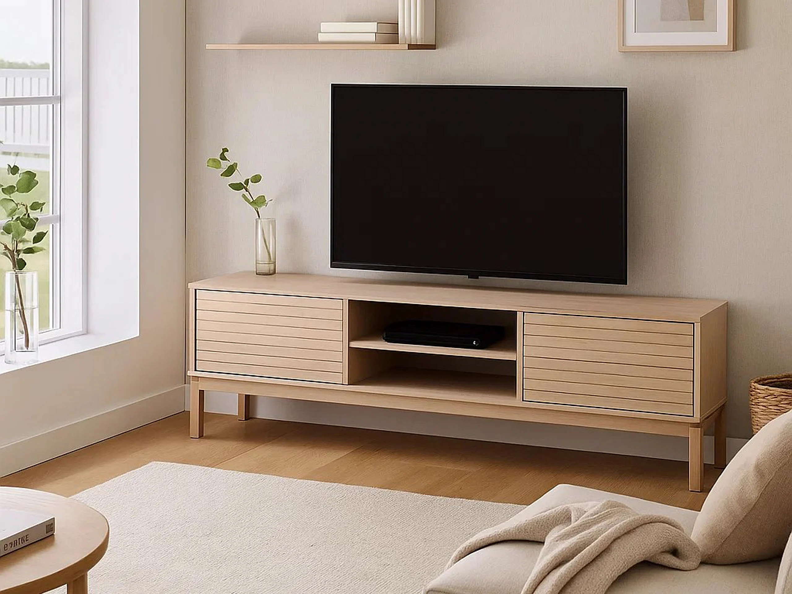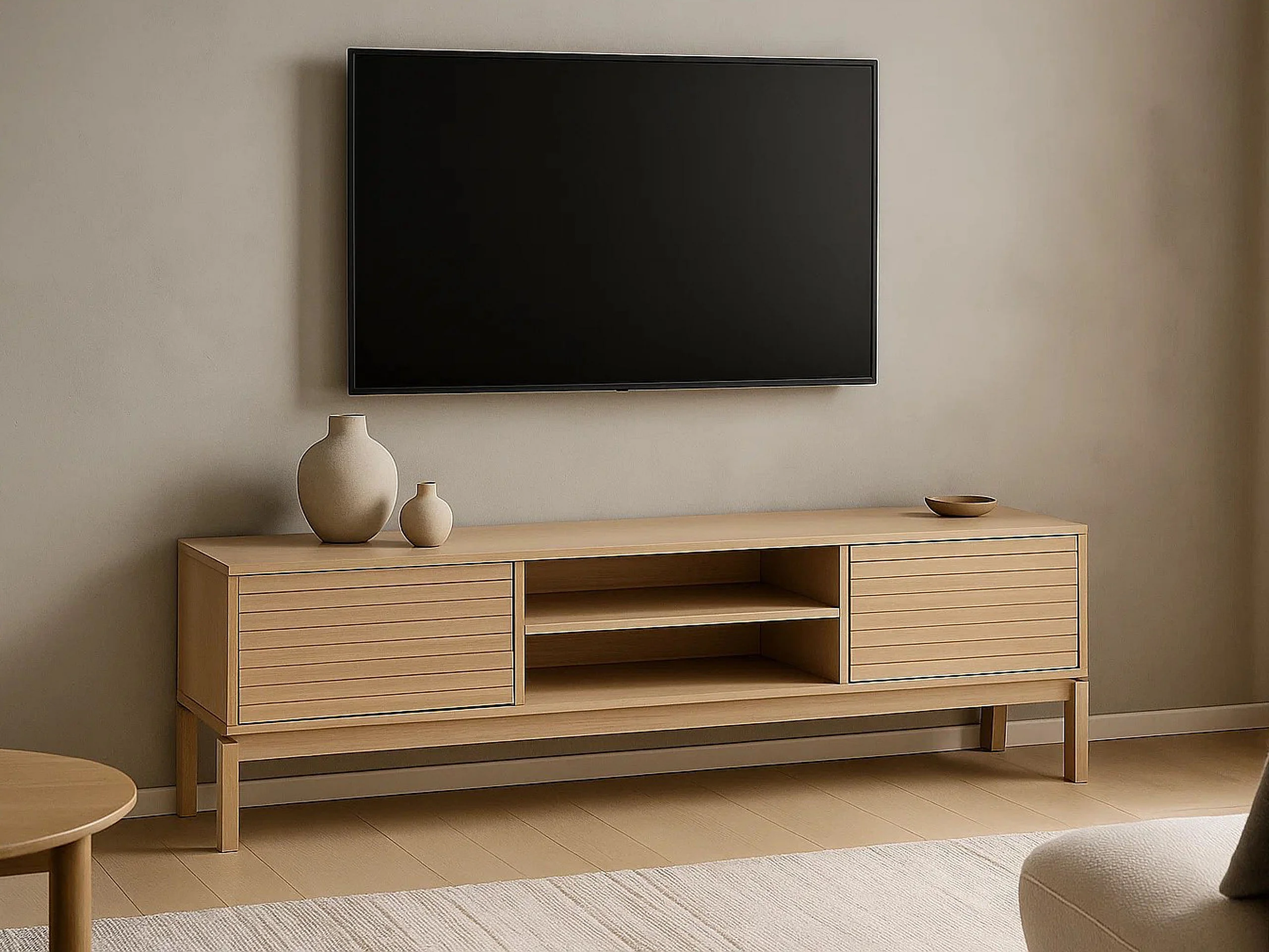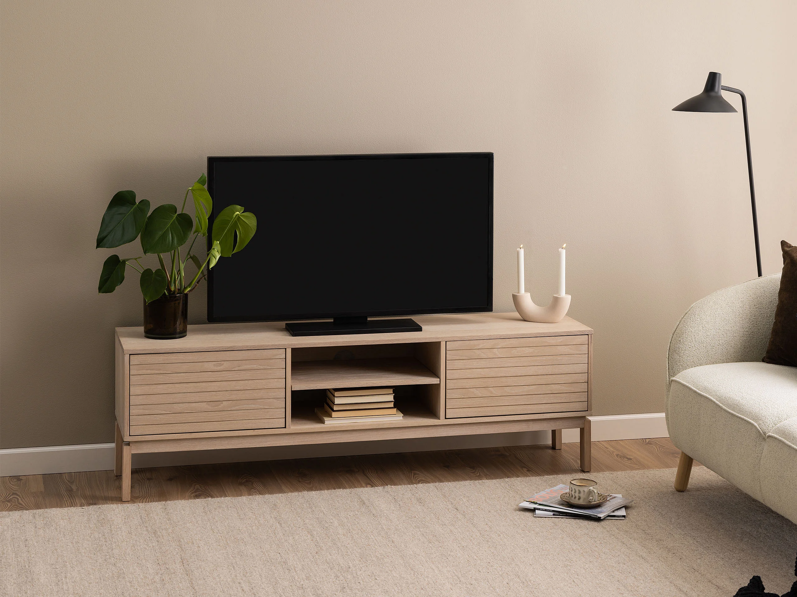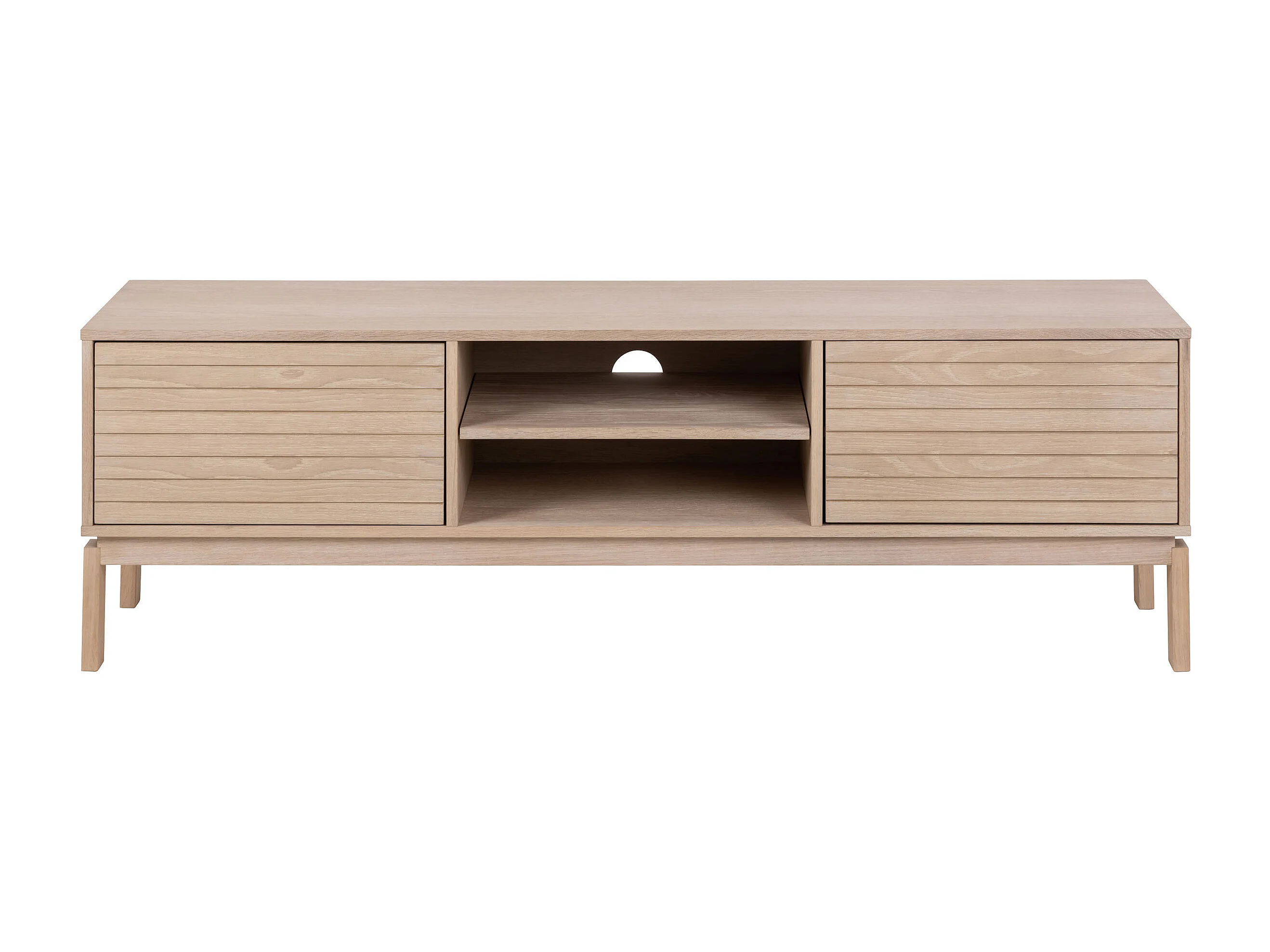 Szafka RTV Cortina 160 cm z frontem lamelowym, kolor dębowy bielony olejowany