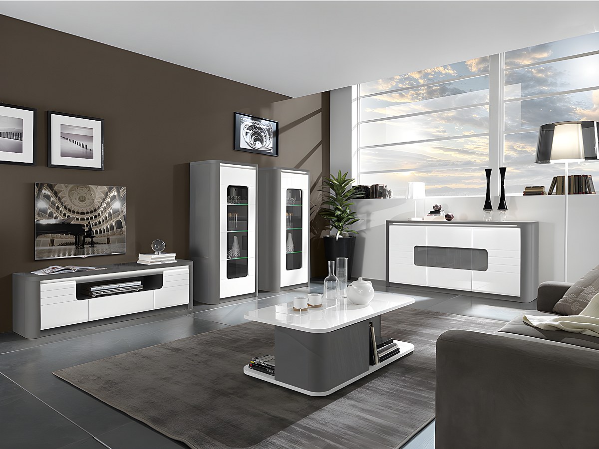 Biały i szary kolor wniosą elegancję do wnętrza w nowoczesnym stylu. Błyszczący lakier na każdym meblu z tej kolekcji podkreśla jej nowoczesność i modny styl.