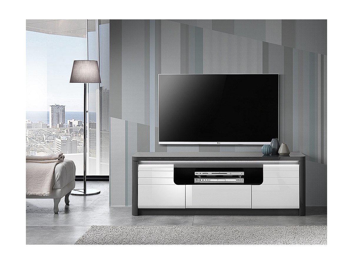 Szafka RTV PERCEPTION - LED - 2 szafki 1 szuflada - Kolor szary i biały