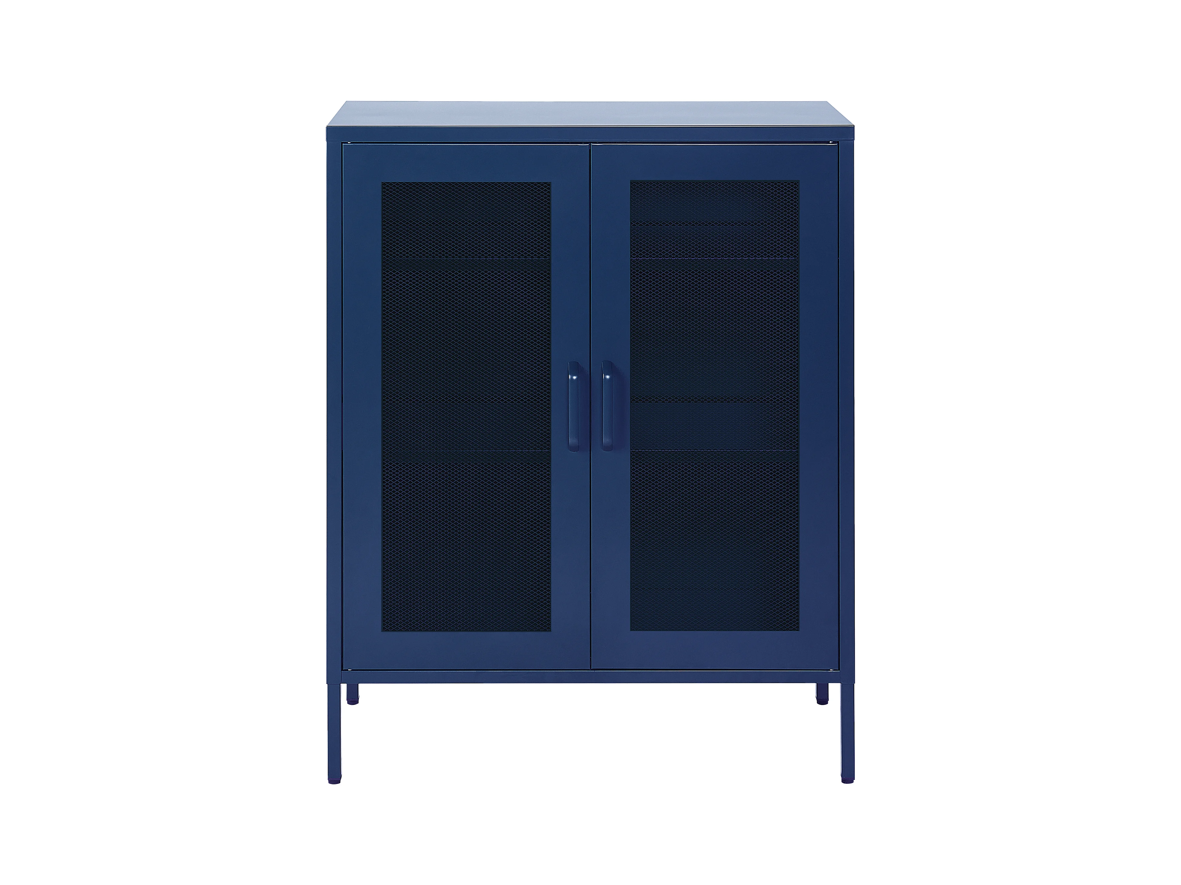 Komoda z wieloma drzwiami i szufladami, niebieska