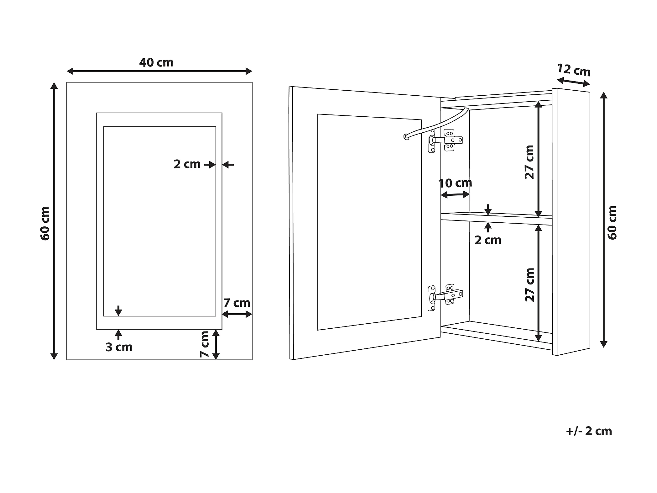 Szafka wisząca łazienkowa z lustrem NAVARRA 60 cm 60 cm Czarny
