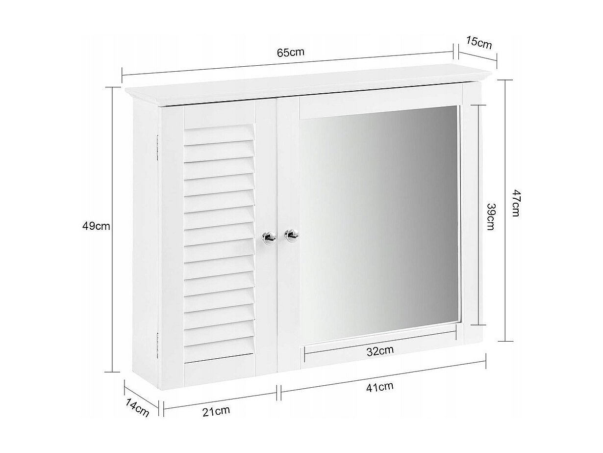 Szafka wisząca z lustrem łazienkowa drzwi półki ścienne skandynawski 65 cm