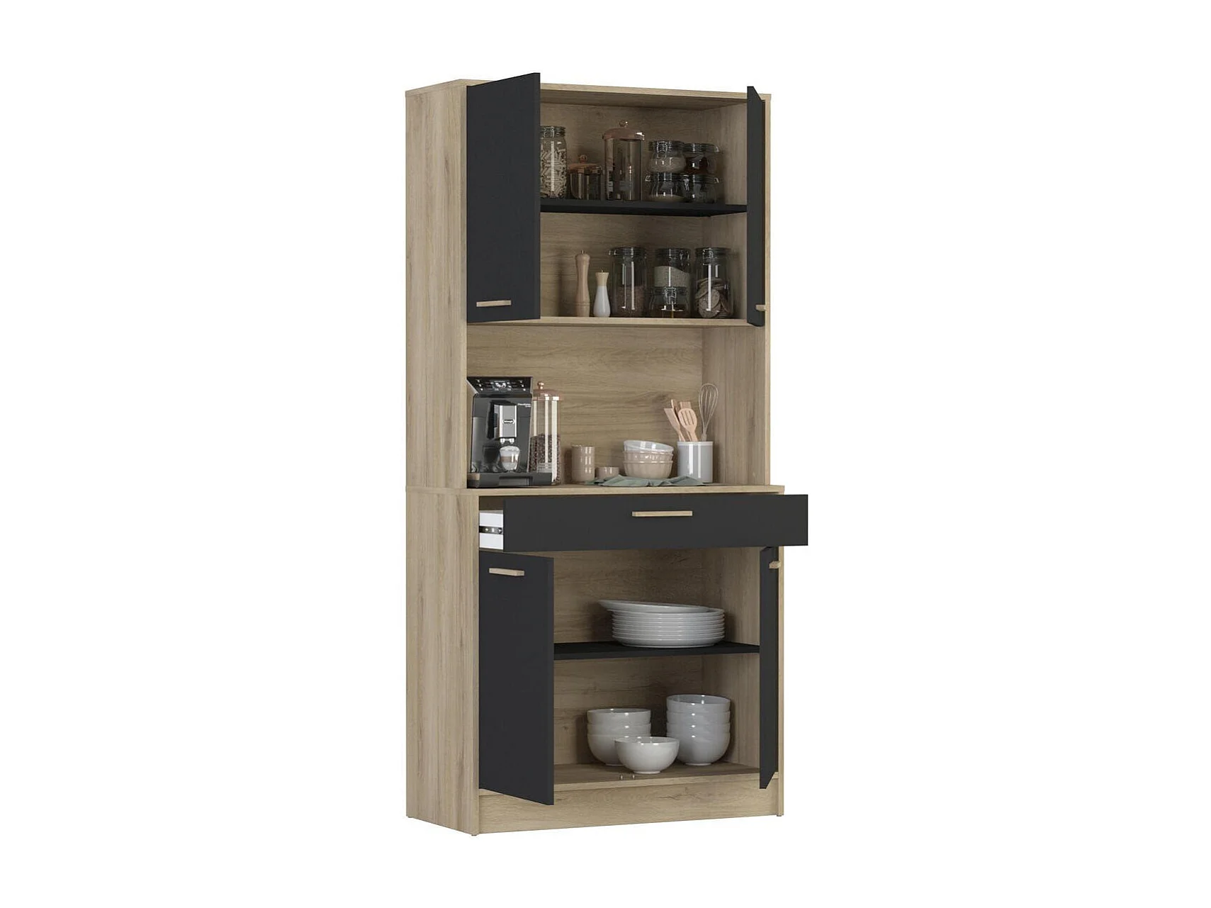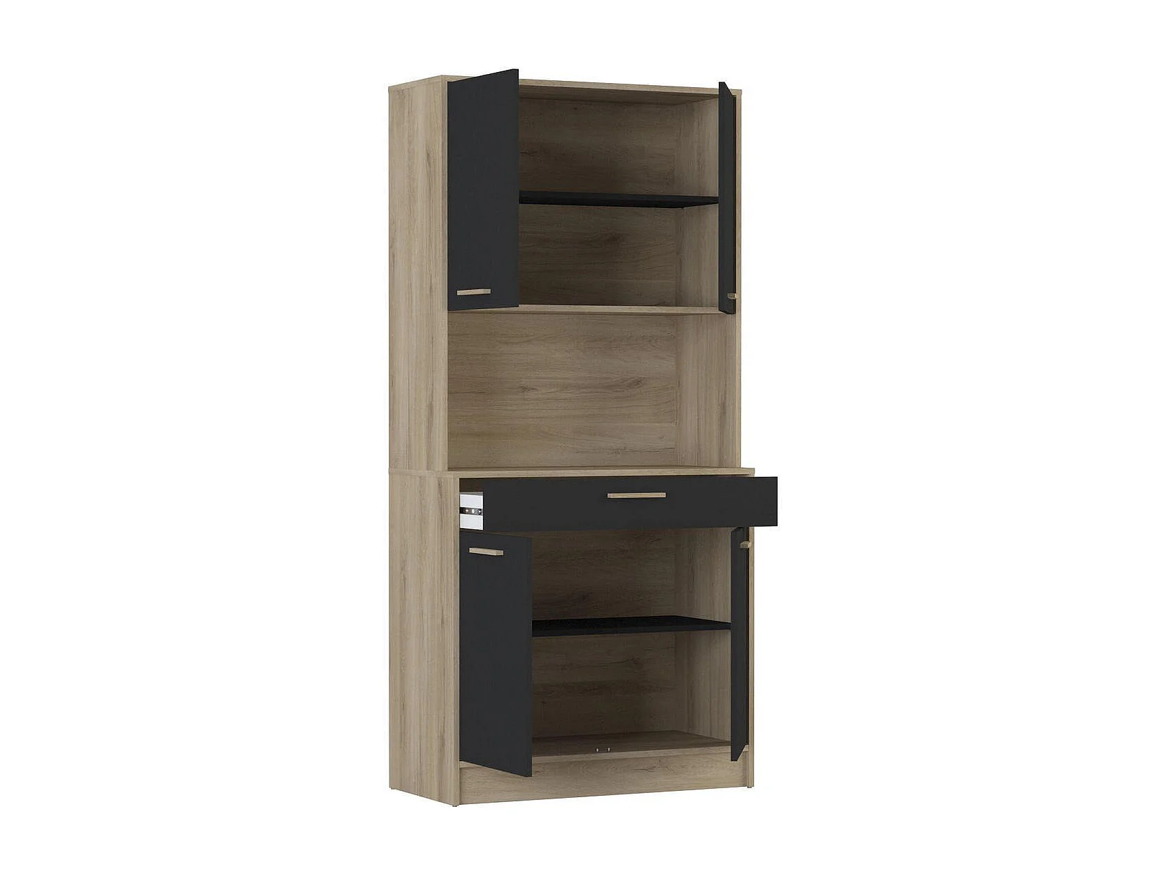 Szafka wysoka z 4 drzwiczkami i 1 szufladą, dąb i czarny dekor - szer. 83 x wys. 176 cm - Dolce