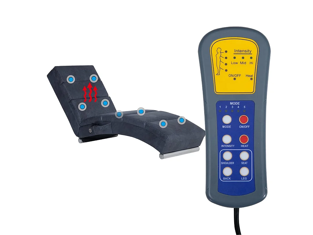 Szara Leżanka z Eko-zamszu z Masażem, Ogrzewaniem, Pilotem i Nóżkami ze Stali Nierdzewnej