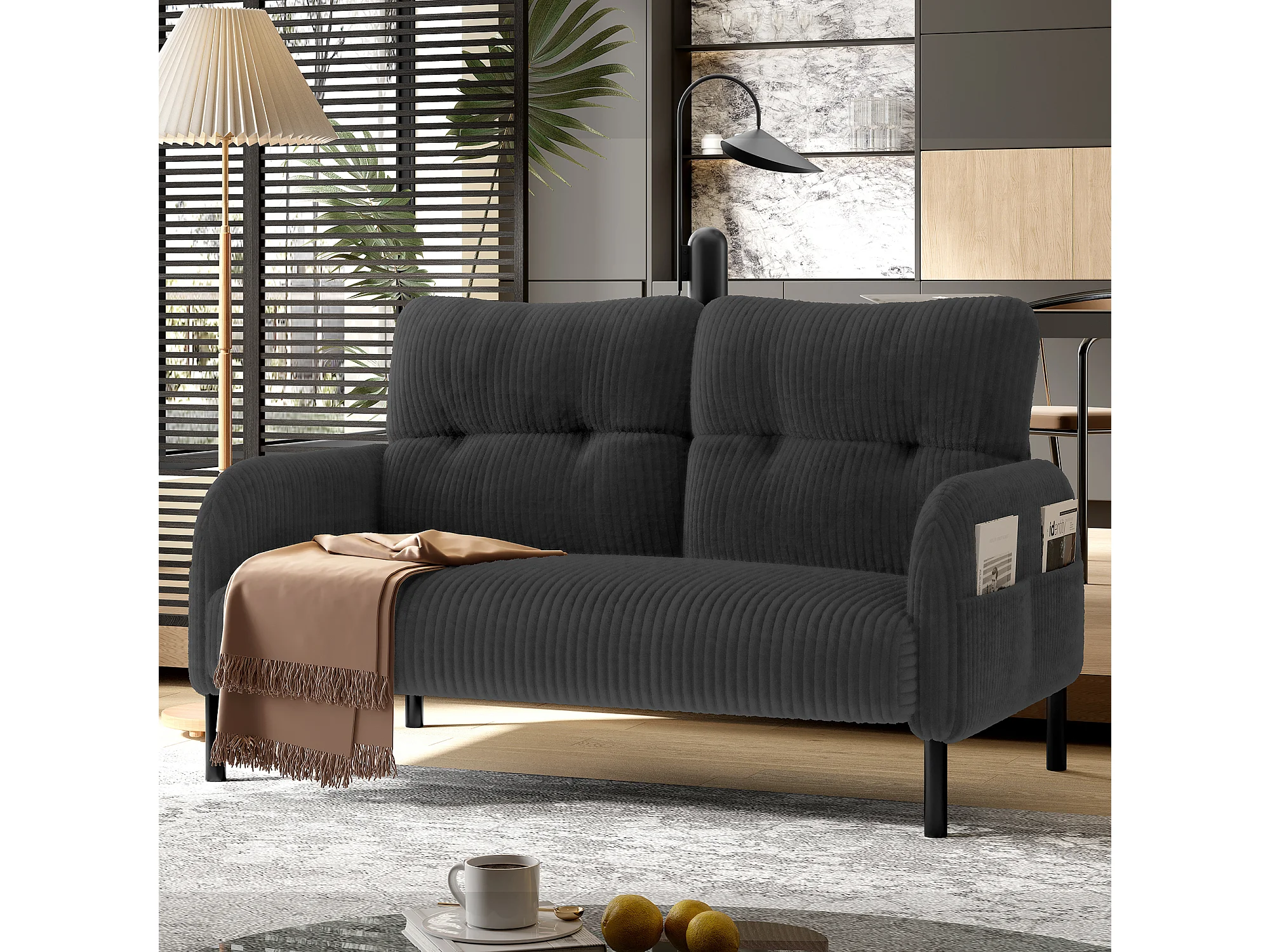 Szara sofa prosta - Fotel z oparciem i kieszeniami bocznymi - sztruks - do biur i salonów
