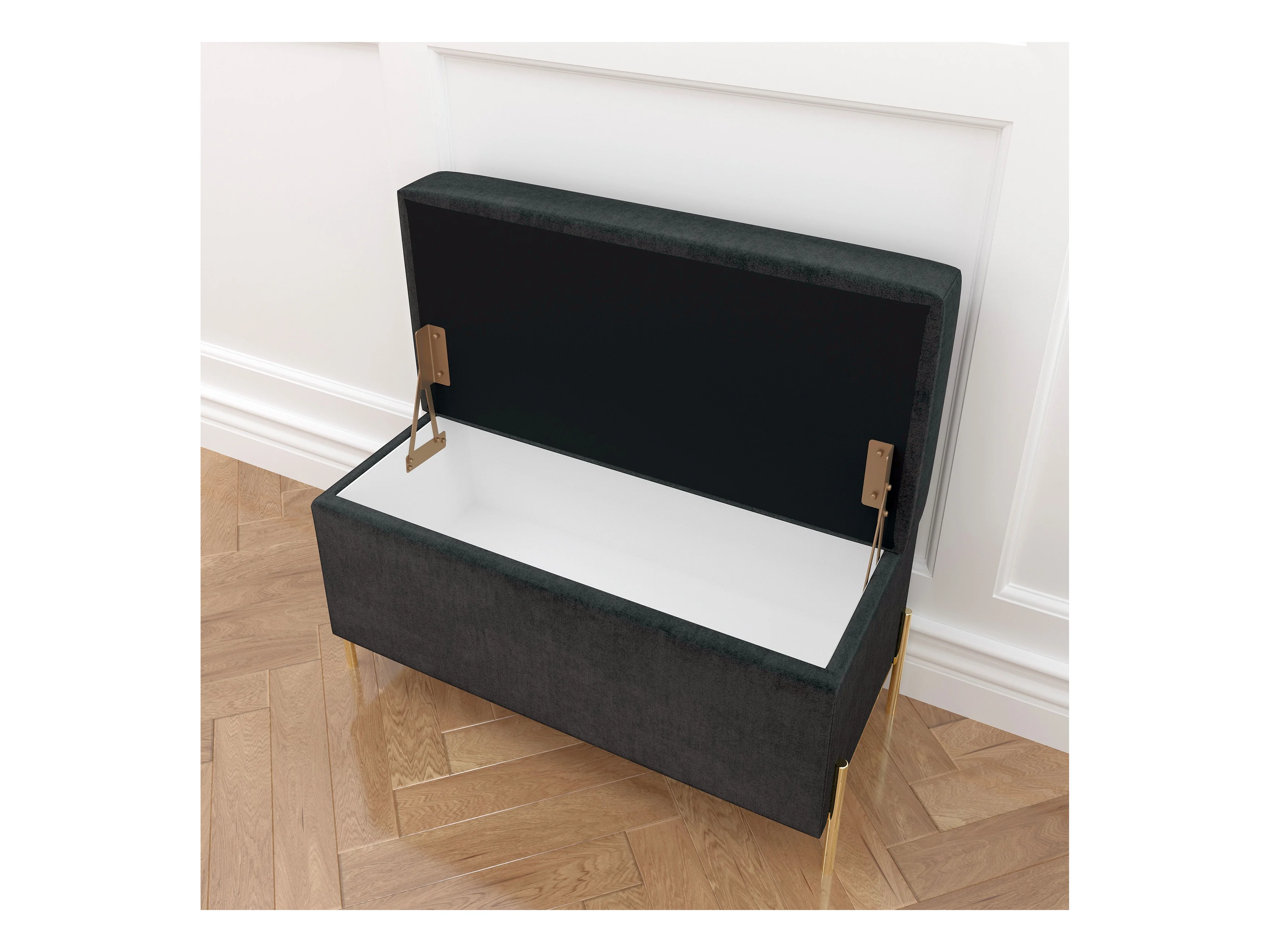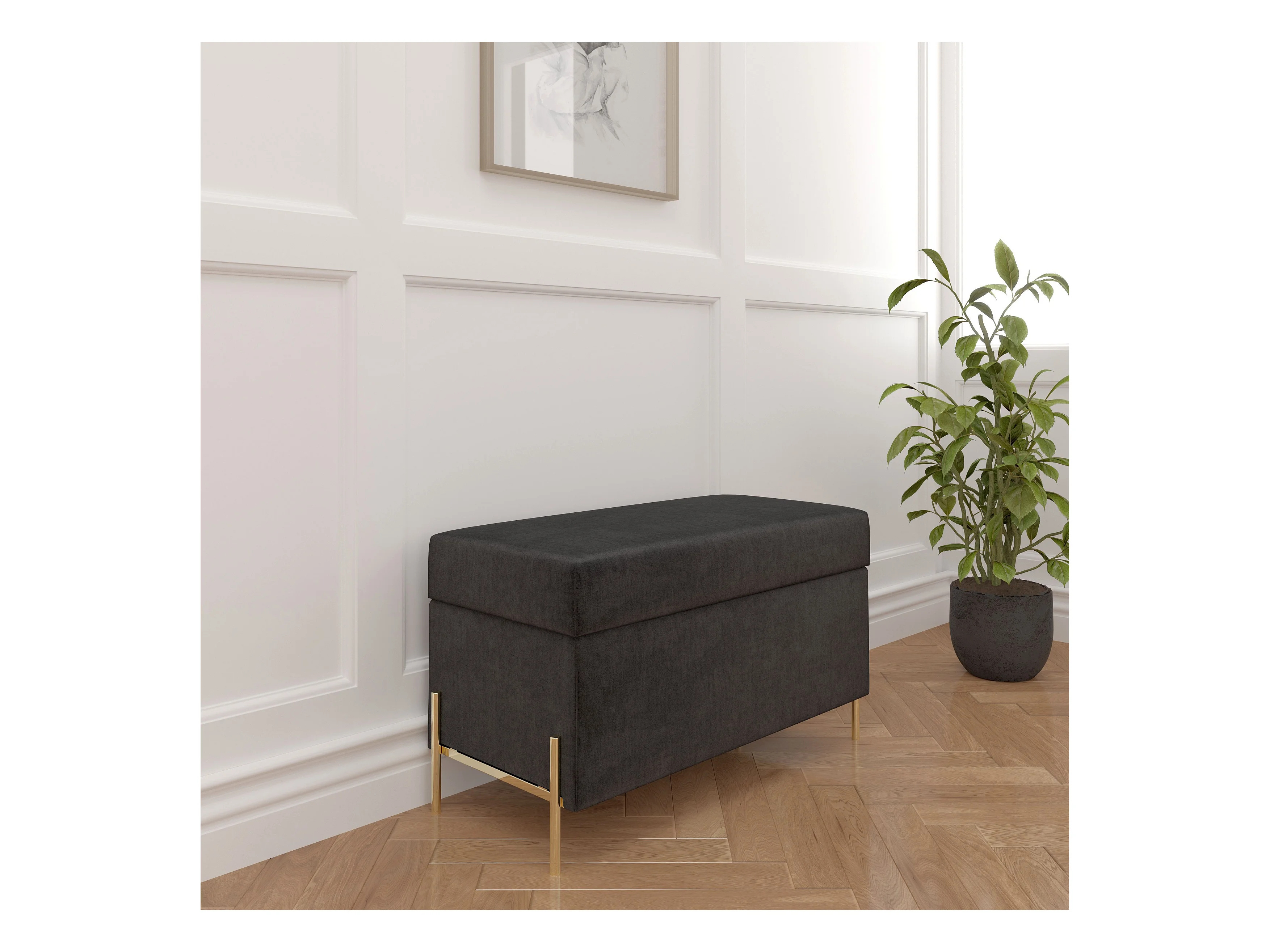 Szara tapierowana ławka Dancan BORGO z pojemnikiem