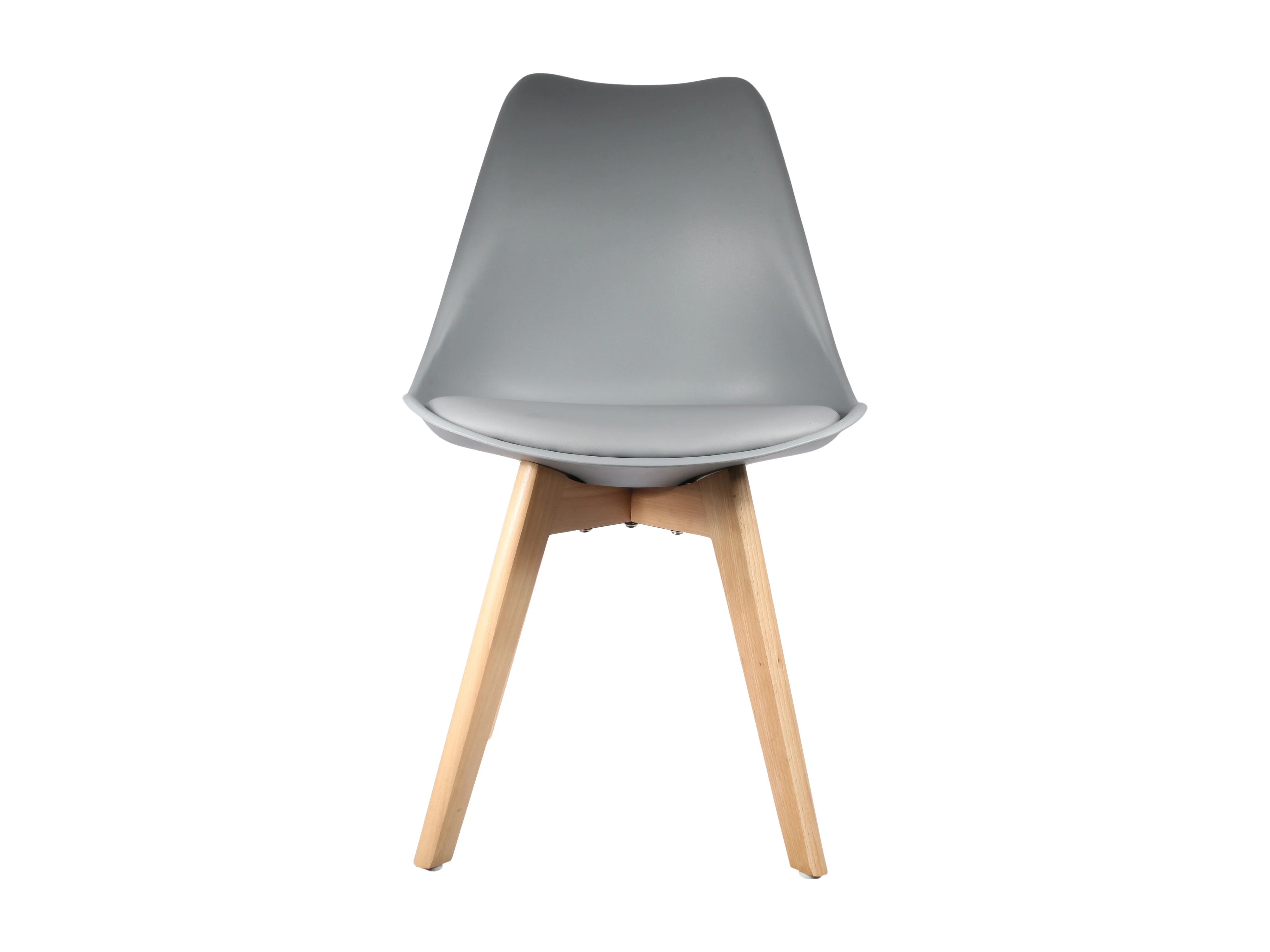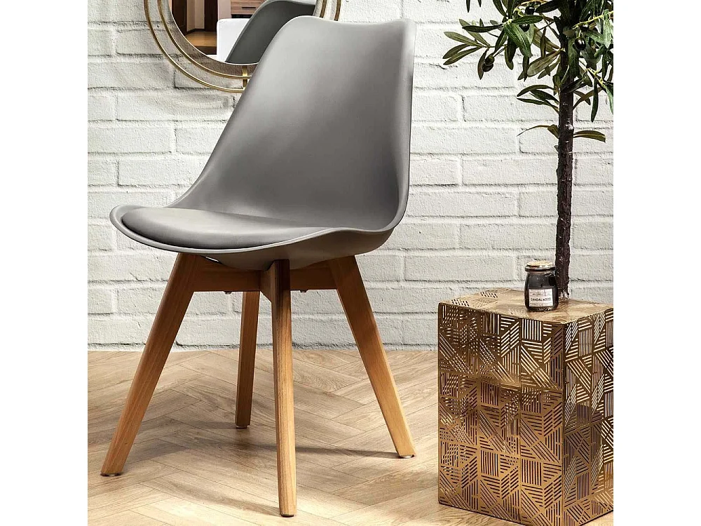 Zestaw 2 krzeseł JODY - Polipropylen, ekoskóra i buk - Kolor jasnoszary