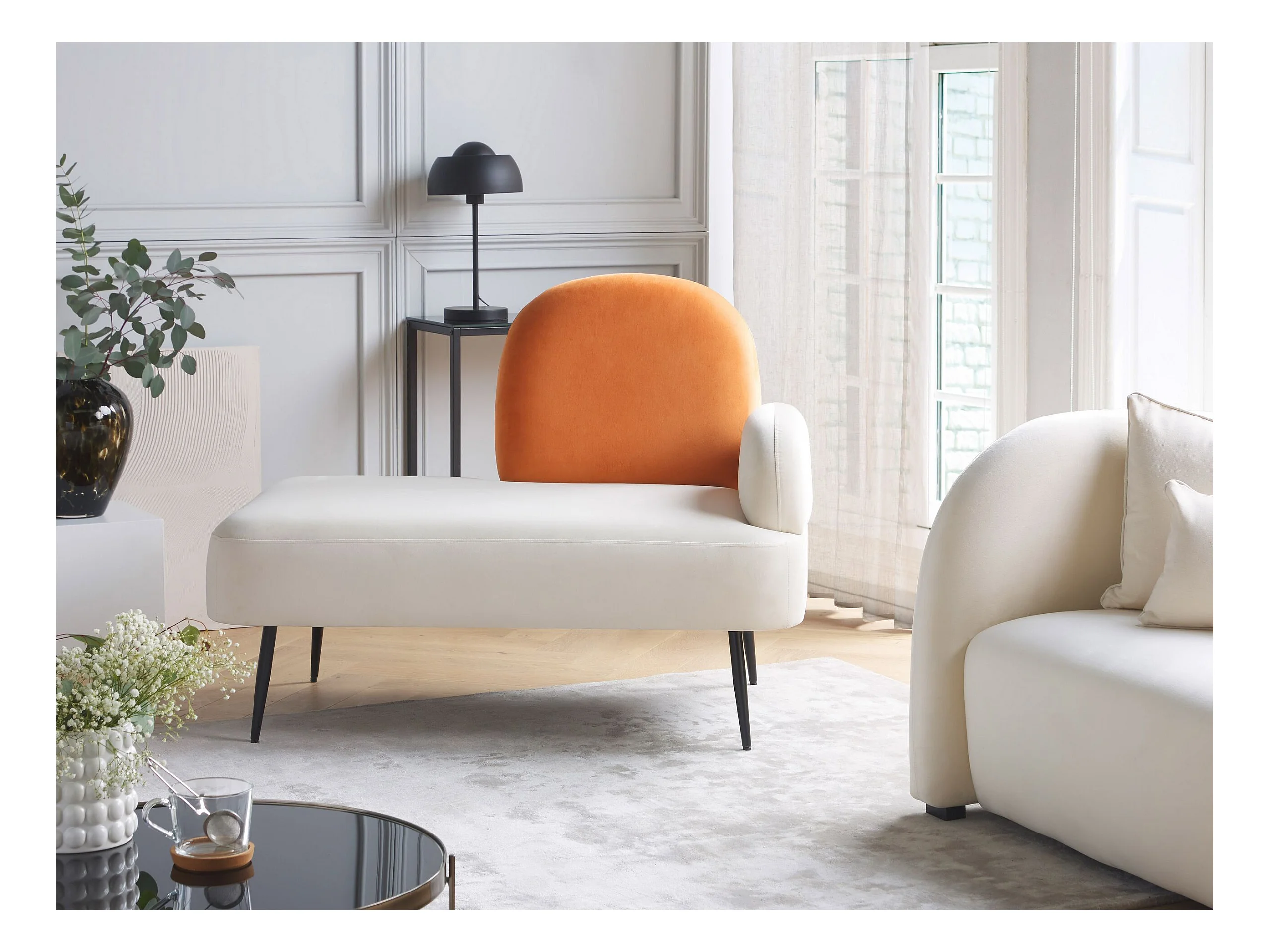 Szezlong prawostronny CHAUMONT Welur Kremowy