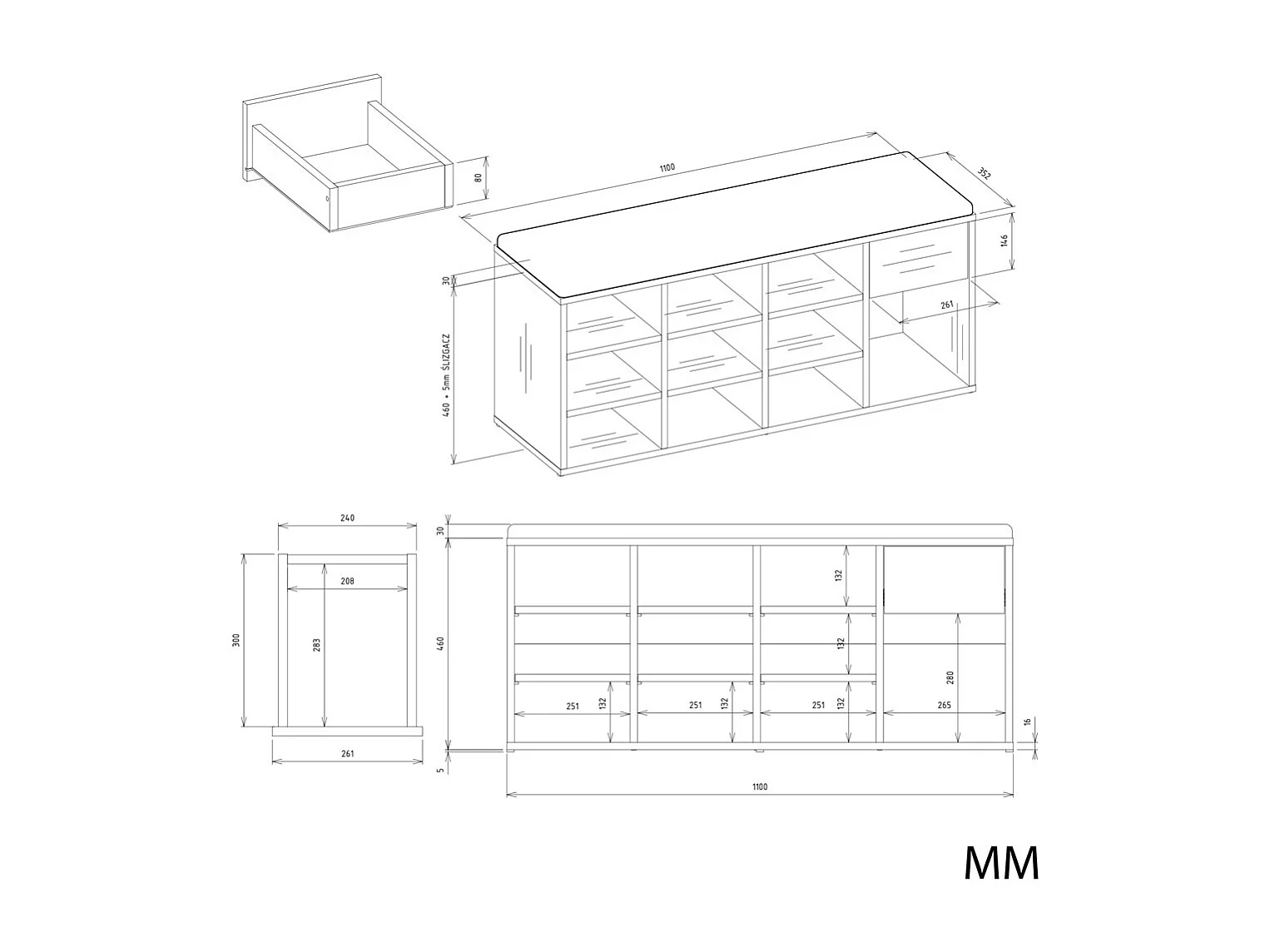 Ławak na buty z półkami i siedziskiem FSR148-N