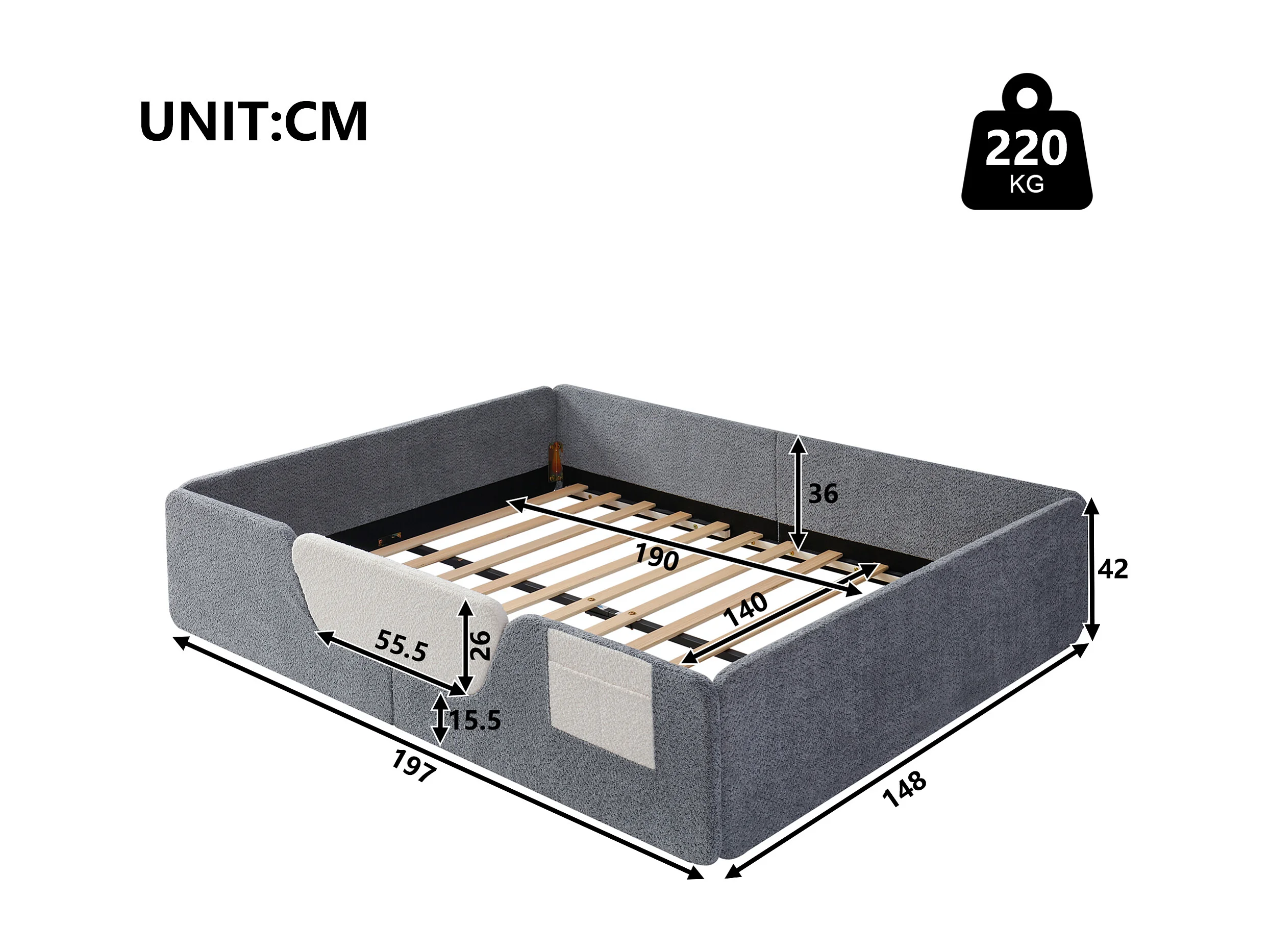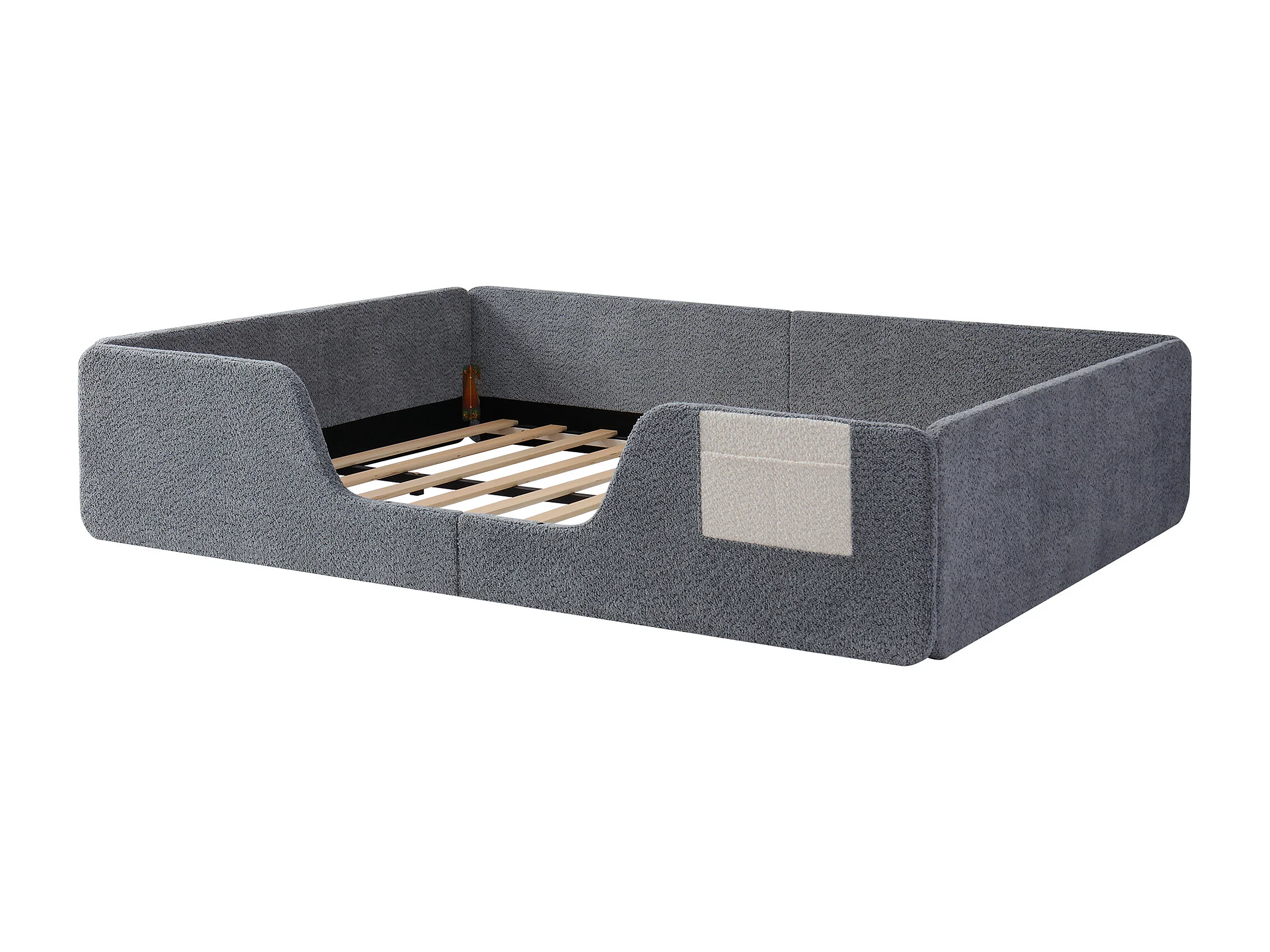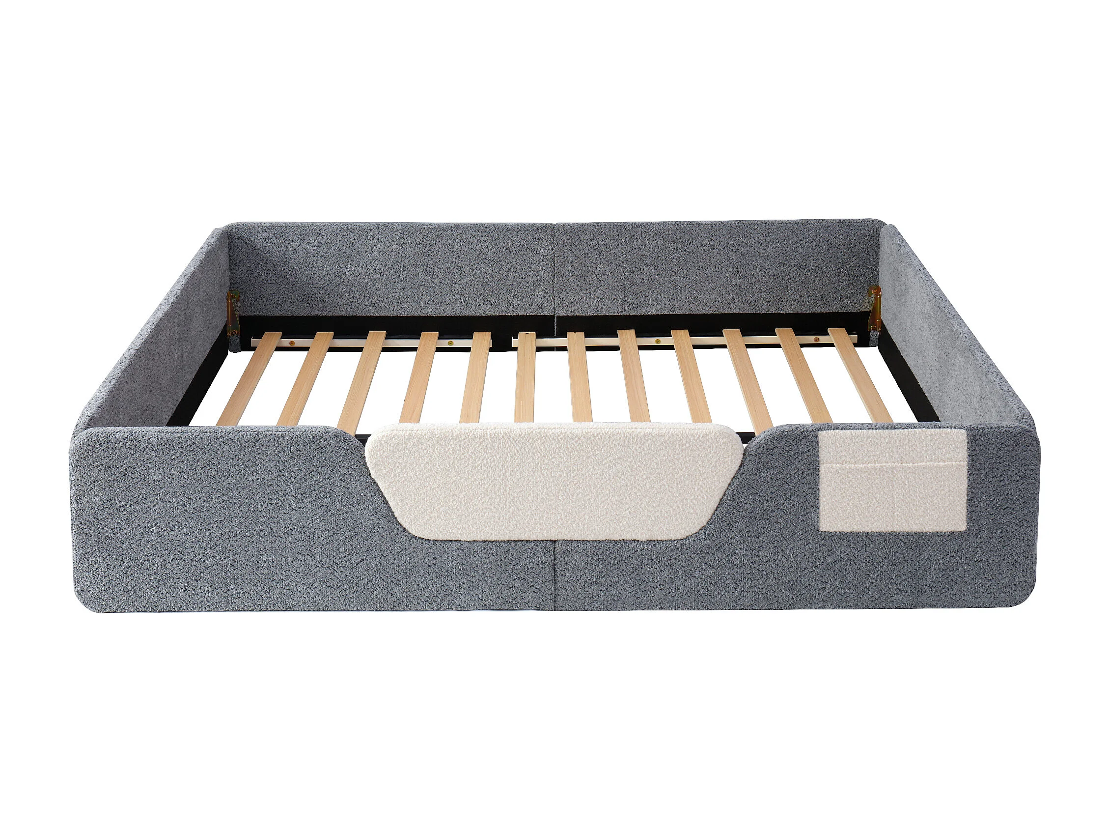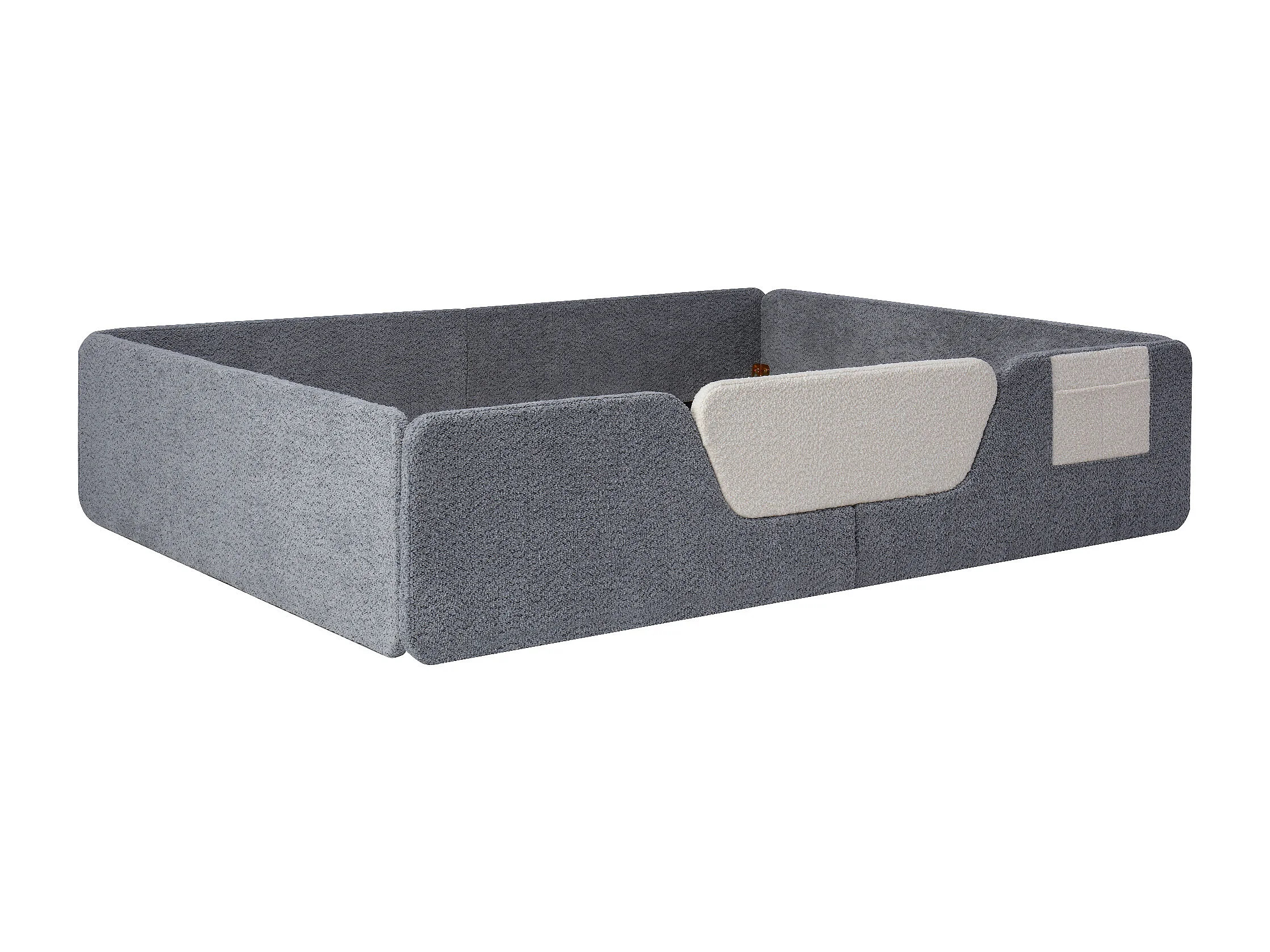 Tapicerowane łóżko dziecięce 140x190 cm - z wyjmowanymi barierkami bezpieczeństwa - z torbą do przechowywania - szary (materac nie jest wliczony w cenę)