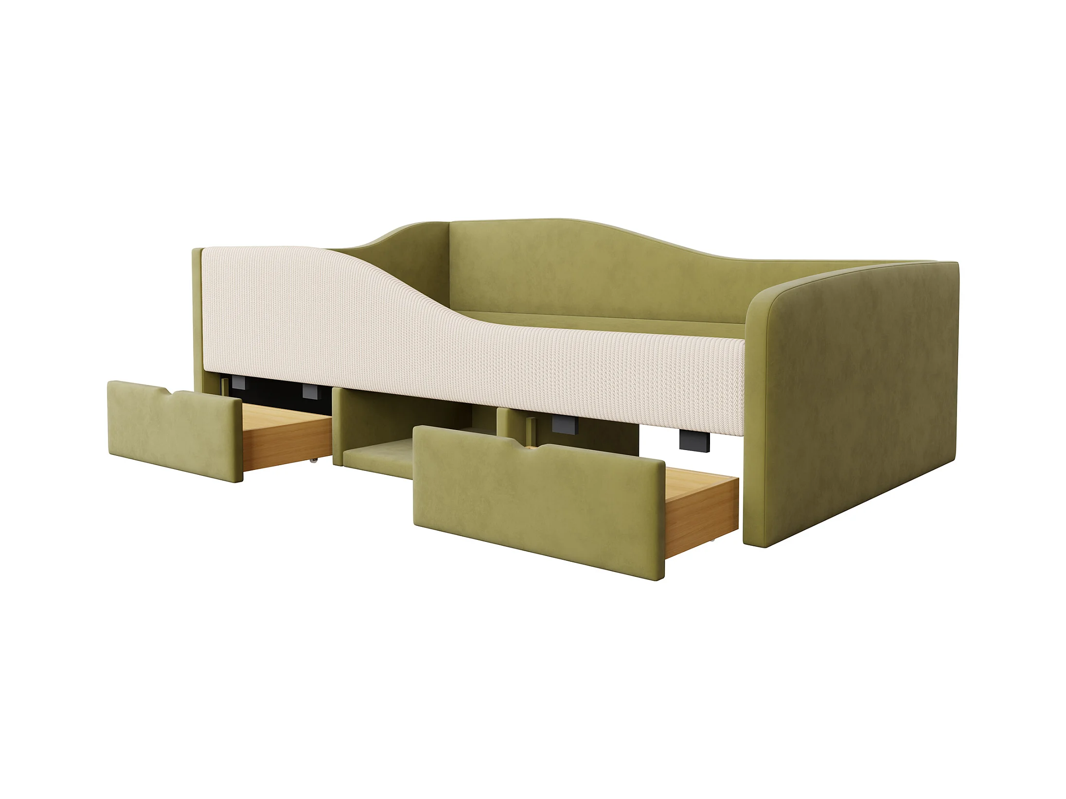 Tapicerowane łóżko dziecięce 90x190 cm - z 2 szufladami - z stelażem lamelowym - Zielony (materac nie jest wliczony w cenę)