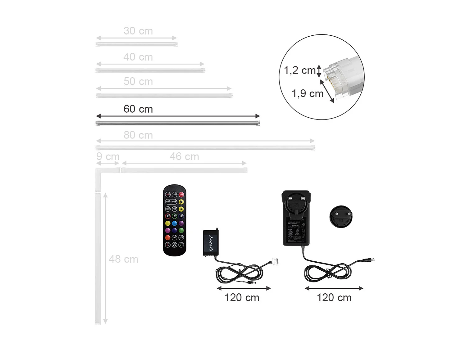 Taśmy LED biały 60x1.5x1.5