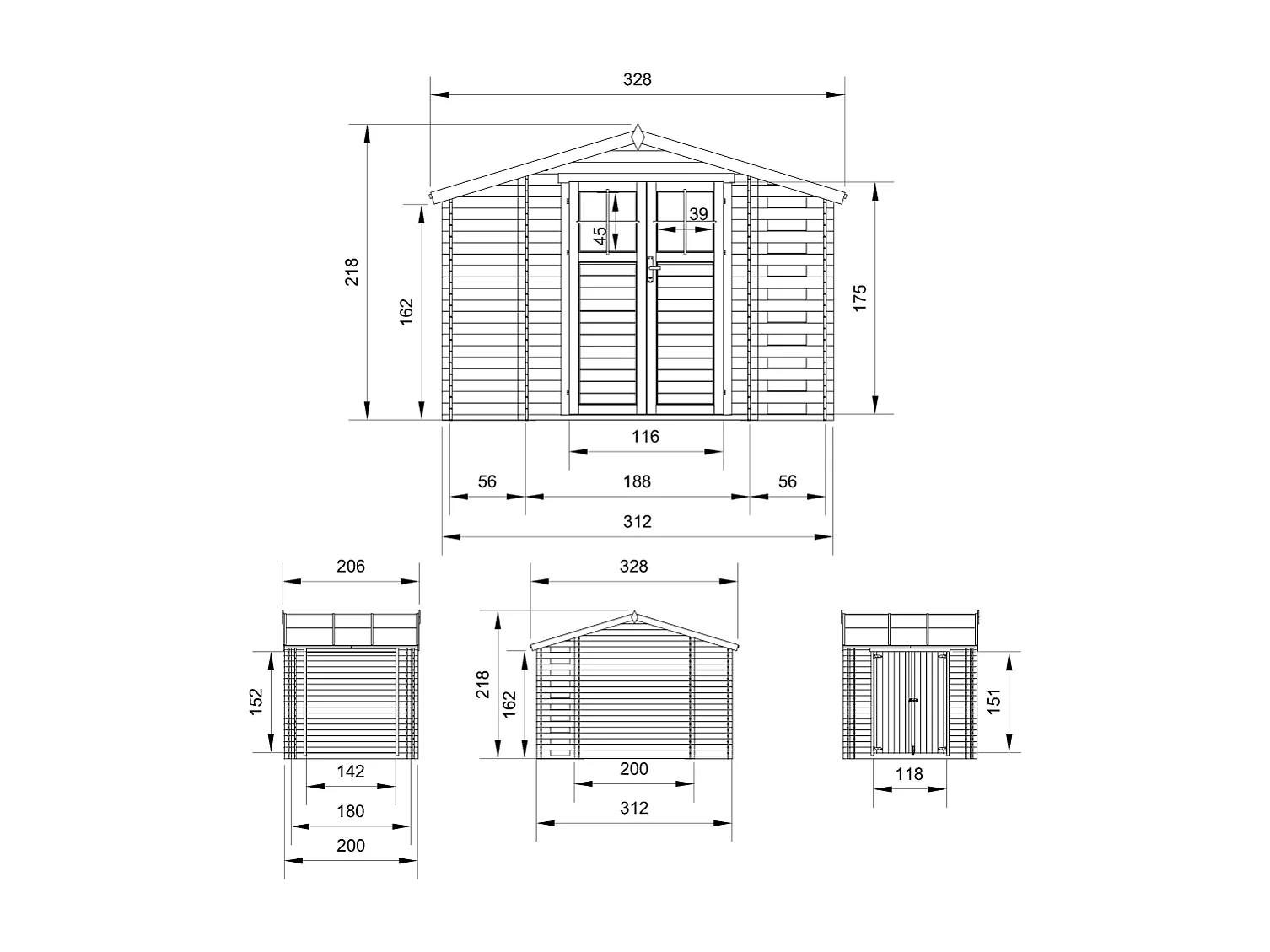 Drewniana szopa ogrodowa z podłogą - 312x200 cm – 5.47 m2 - M391+M391G