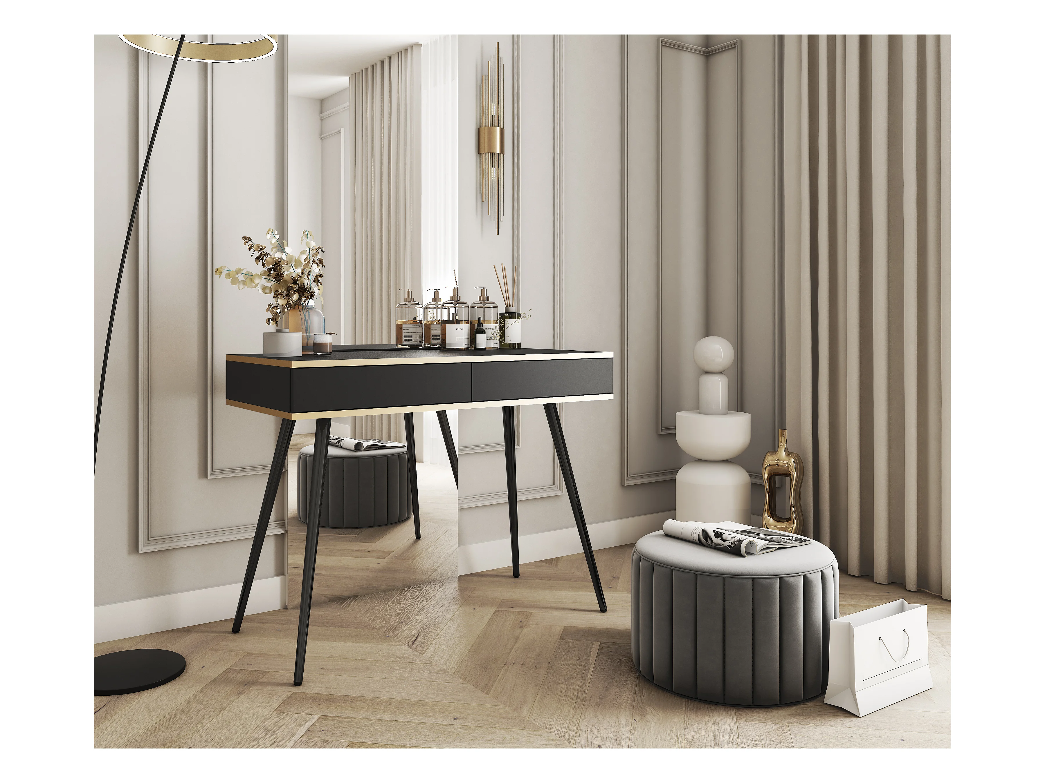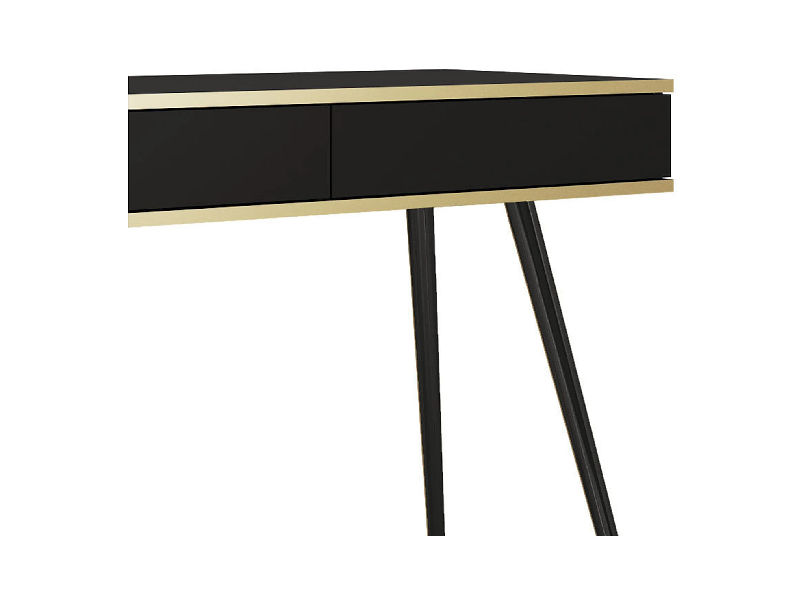 Toaletka 102x80x50 cm, czarna, 2 szuflady, gładki front, odporna na zarysowania, złote metalowe nogi, Push-to-Open
