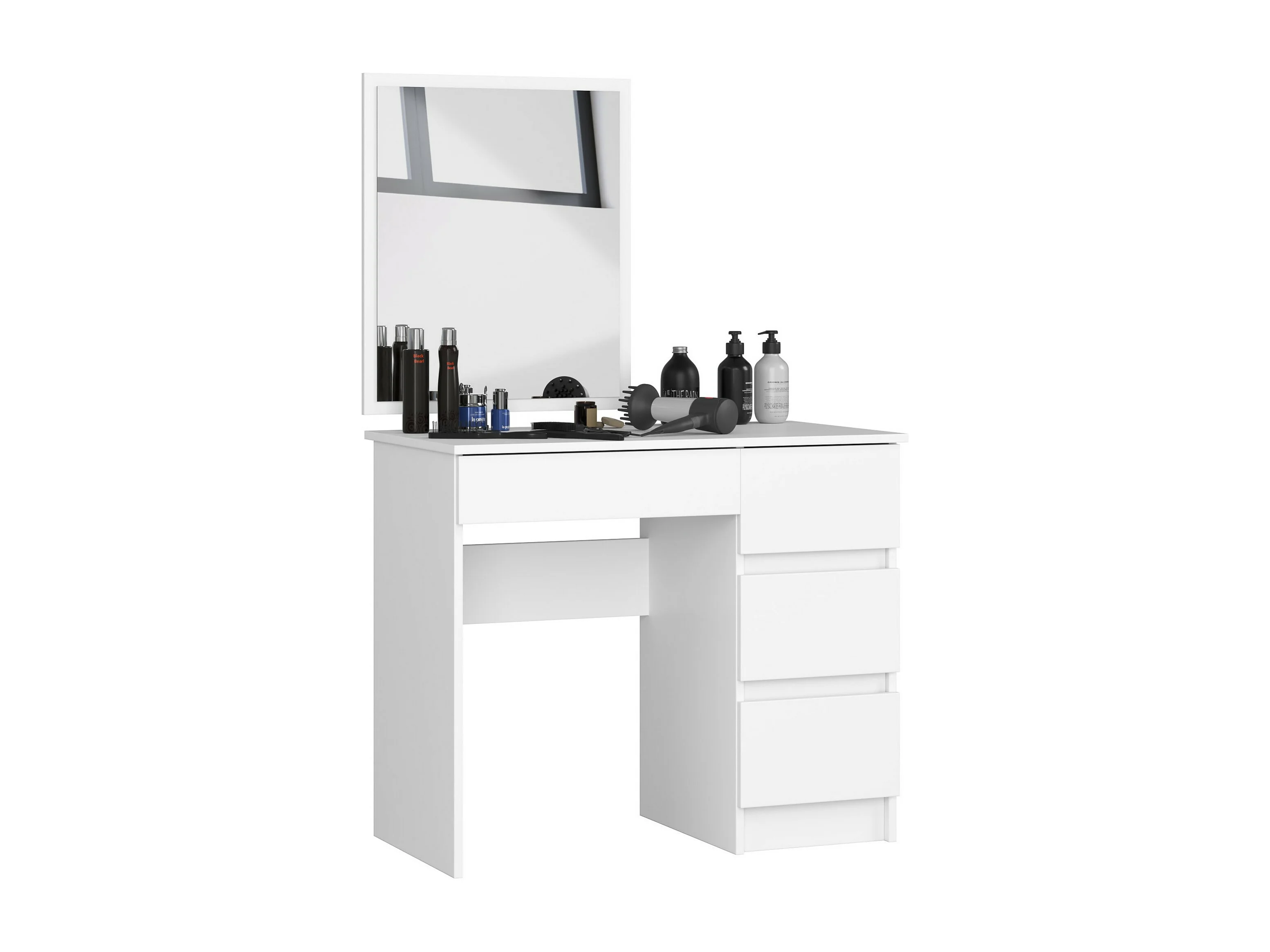 Toaletka AKORD T6 Biała 90 cm z lustrem 900x600 prawa 4 szuflady kolor Biały mat 90x50x142 cm