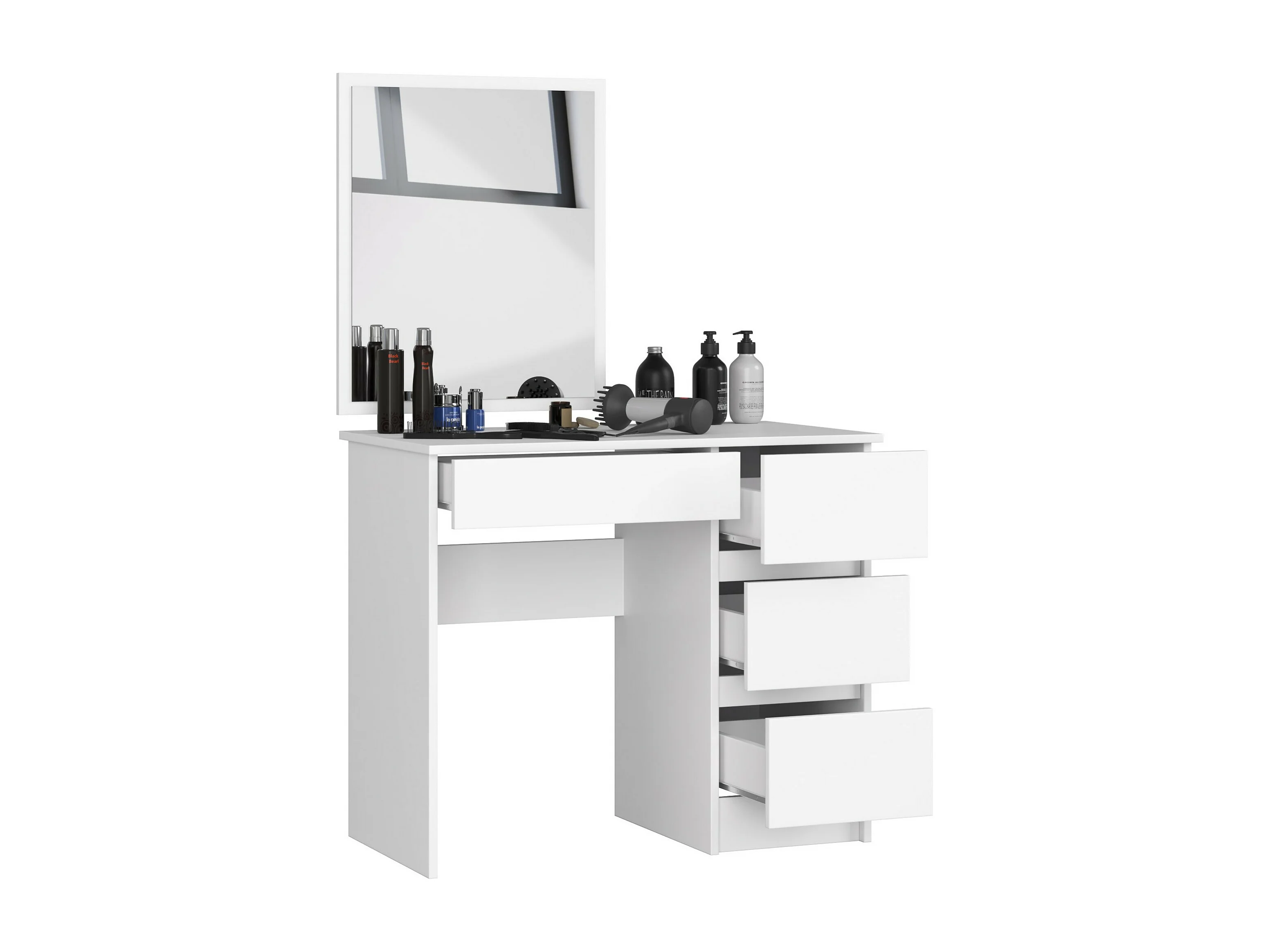 Toaletka AKORD T6 Biała 90 cm z lustrem 900x600 lewa 4 szuflady kolor Biały mat 90x50x142 cm