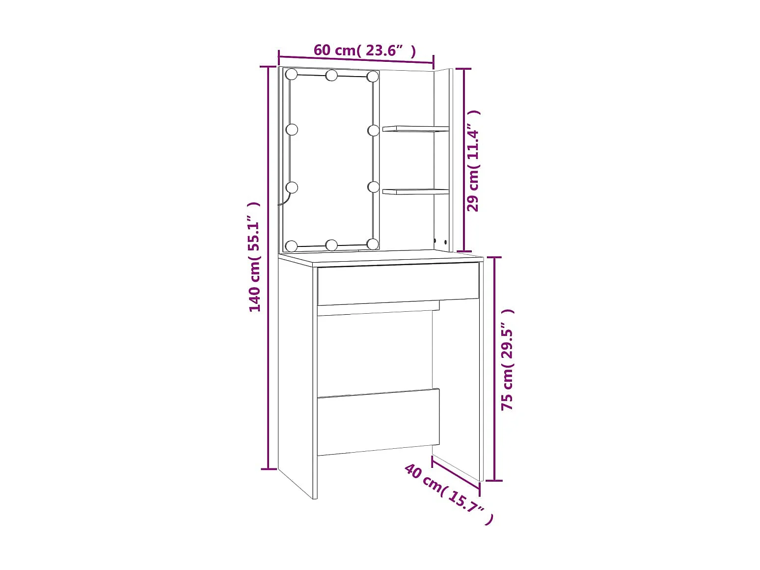Toaletka z LED Biały z Drewna Inżynieryjnego z 2 Szafkami i Oświetleniem LED