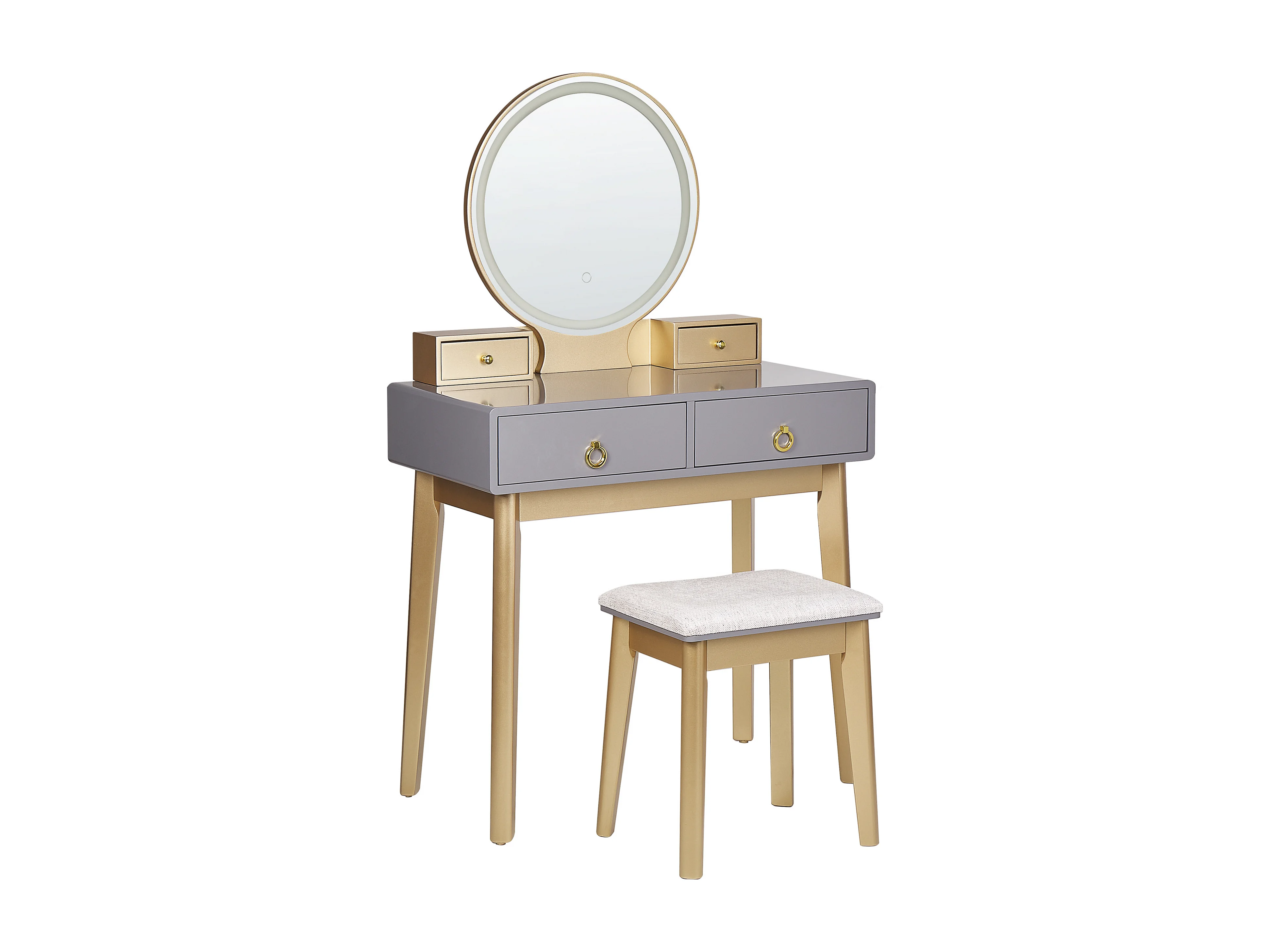 Toaletka z lustrem i stołkiem SURIN LED Szary