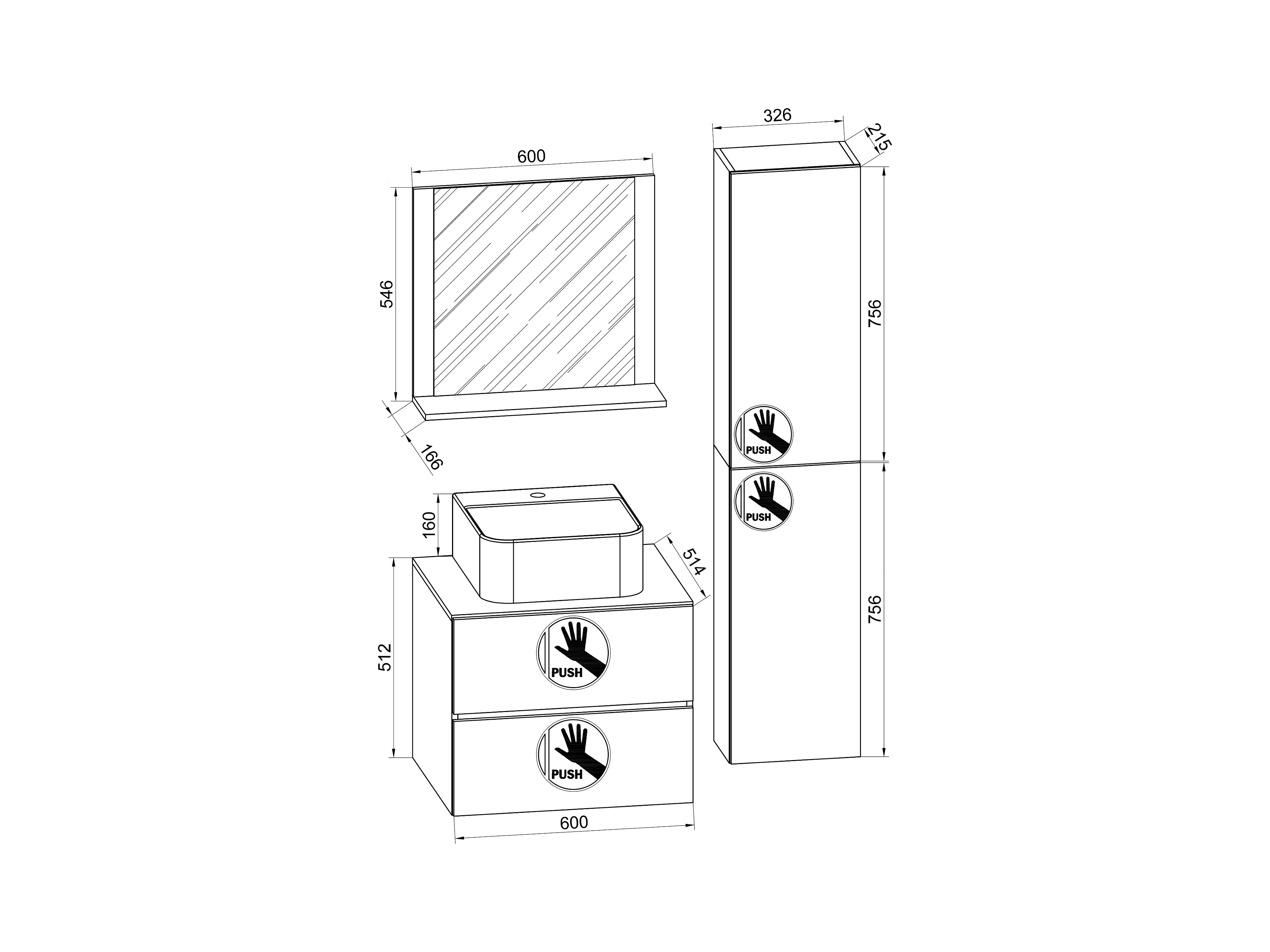 5-częściowa umywalka łazienkowa 60 cmLendas XL