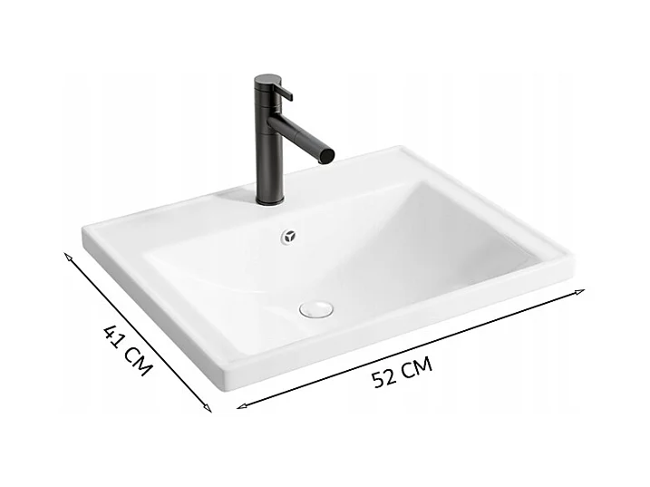 Umywalka ceramiczna, biała, prostokątna 52 x 41 cm